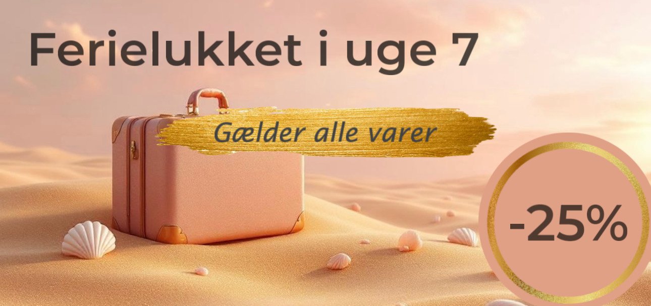 Vi holder ferielukket i uge 7. Webshoppen er stadig åben, og du kan i ferieperioden spare min. 25% på ALLE varer (rabatten er fratrukket prisen, som fremgår på webshoppen). Ordrer bliver ekspederet i rækkefølge fra mandag 16. februar 2026, og der kan forekomme længere leveringstid end normalt.