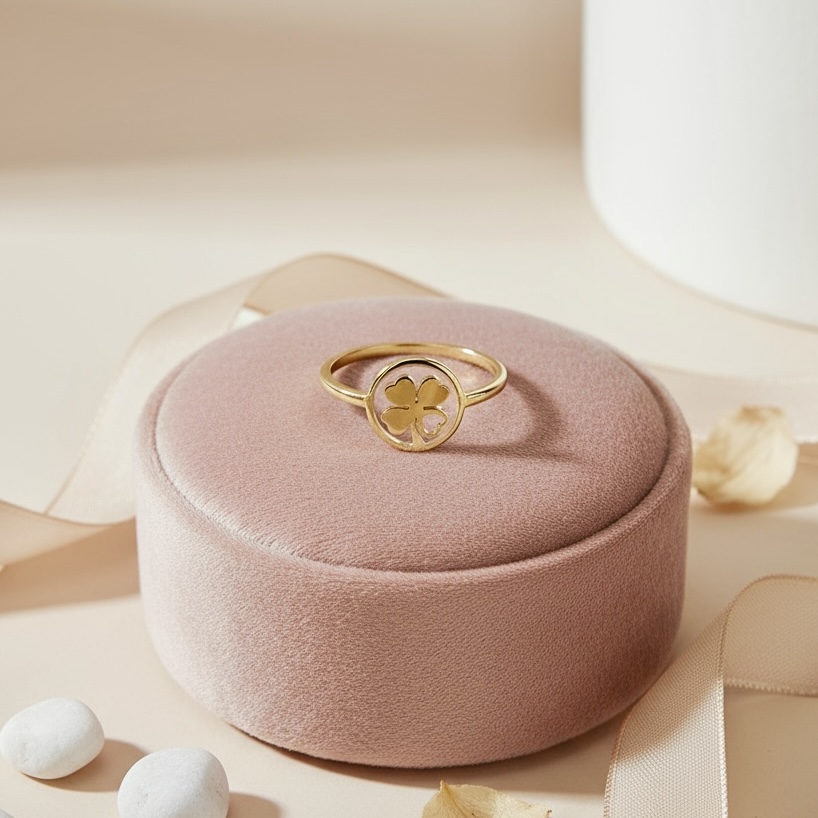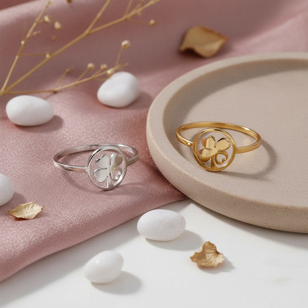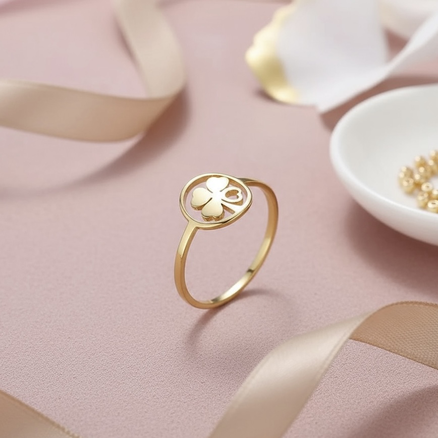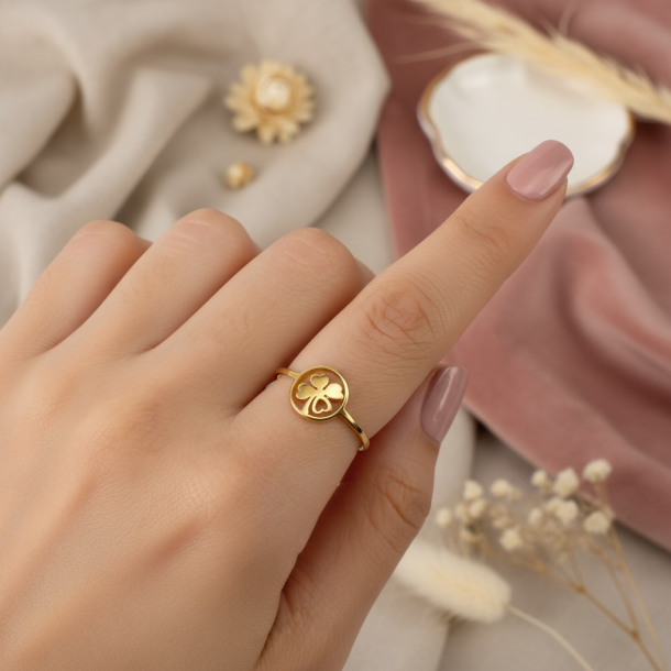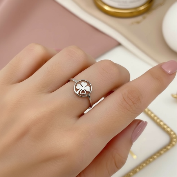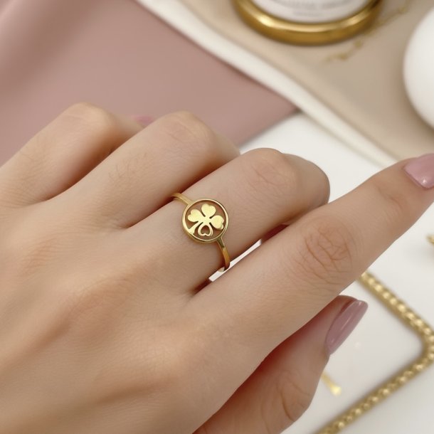 Super fin ring med firkløver-mønsker. Ringen er af rustfrit ædelstål og er udført i et enkelt, feminint design.