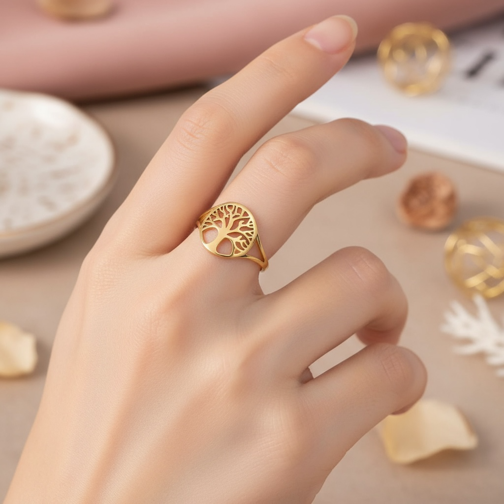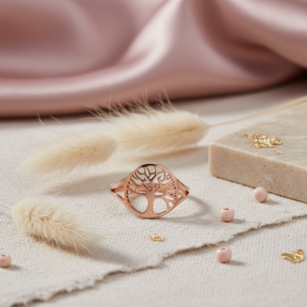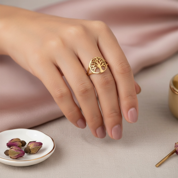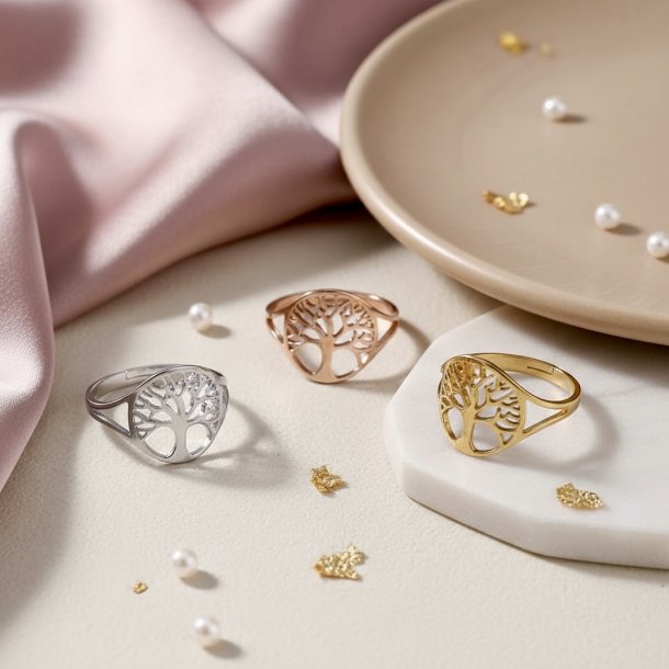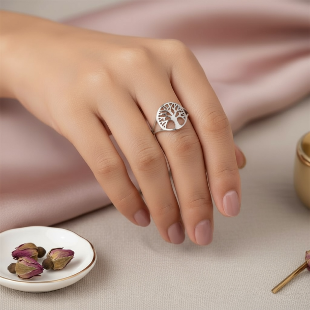Flot ring med "Livets Træ". Ringen er af rustfrit ædelstål og er justérbar.