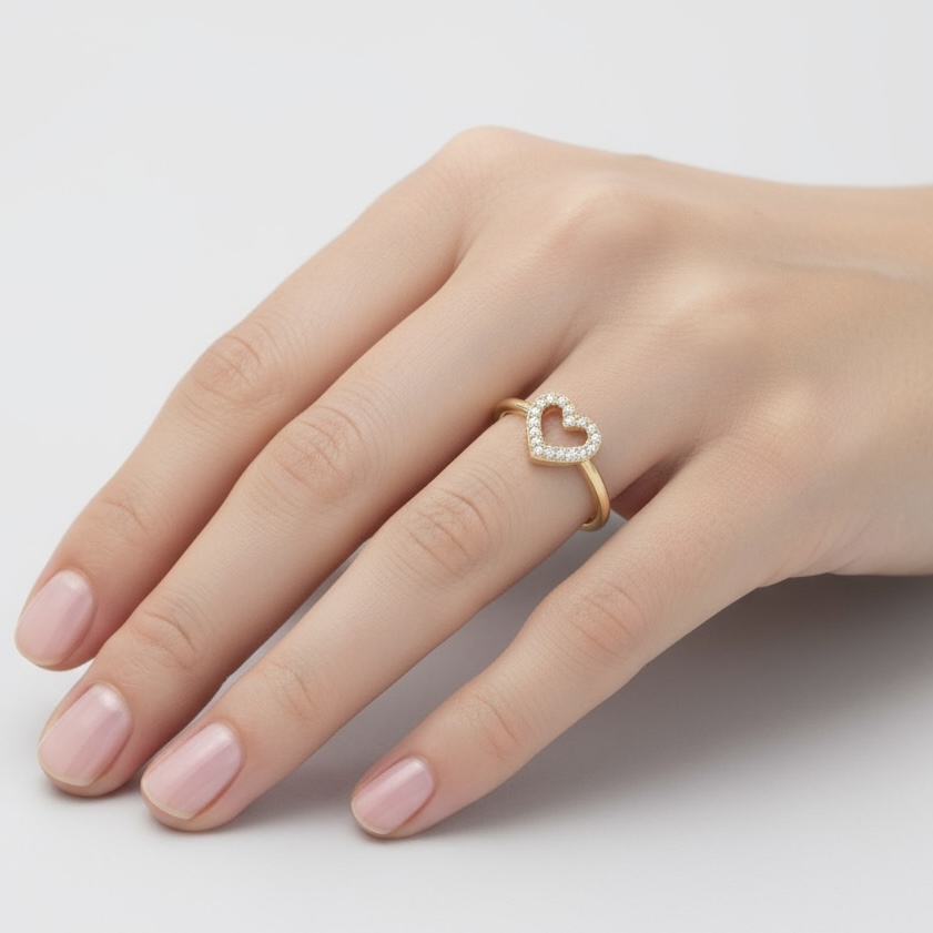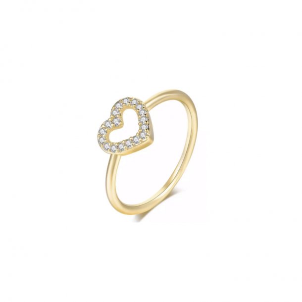 Super smuk ring med et lille, fint hjerte med små, klare zirkoner. Ringen er udført i et romantisk, feminint design. Ringen kan både bruges alene eller kombineres med dine yndlingsringe.