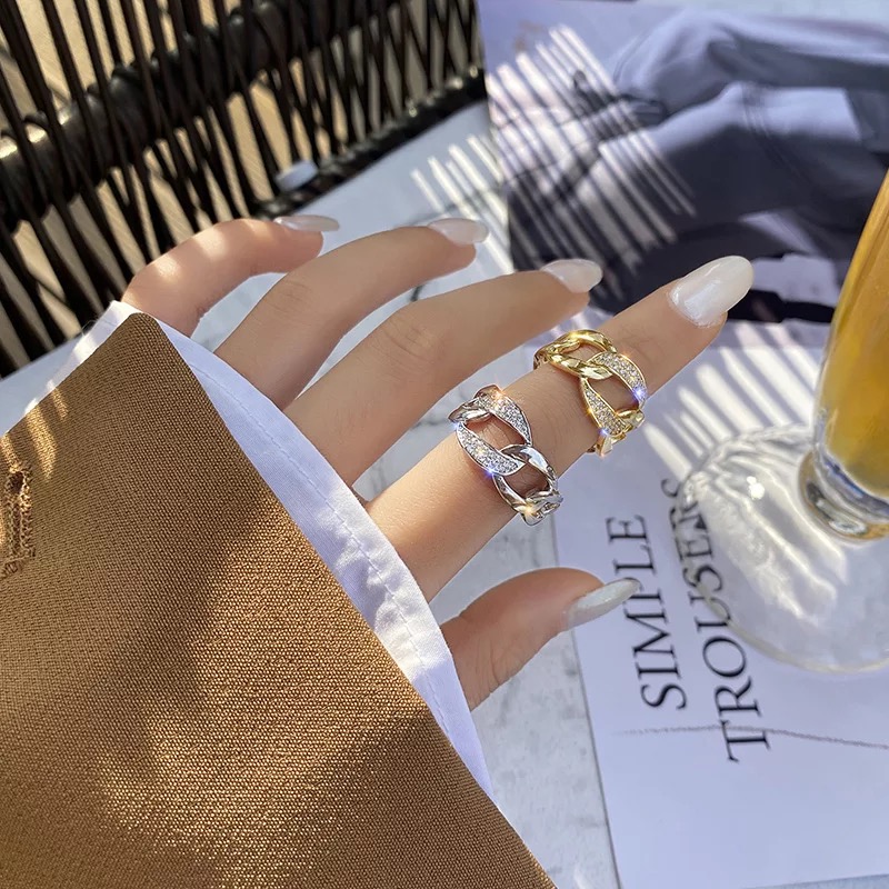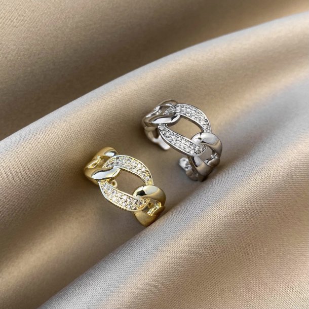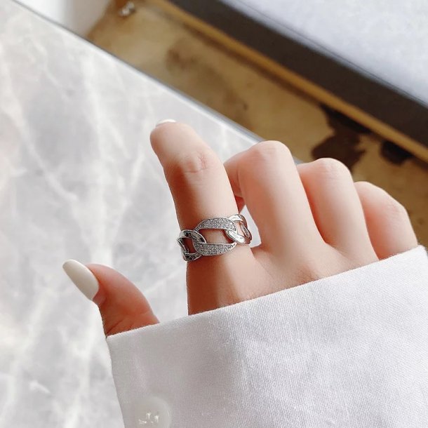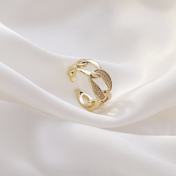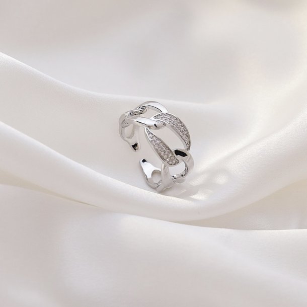 Flot, justérbar ring, som er prydet med små klare zirkoner, hvilket giver et eksklusivt, stilfuldt udtryk.