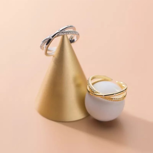 Smuk, justérbar ring, som er prydet med små klare zirkoner, hvilket giver et eksklusivt, stilfuldt udtryk.