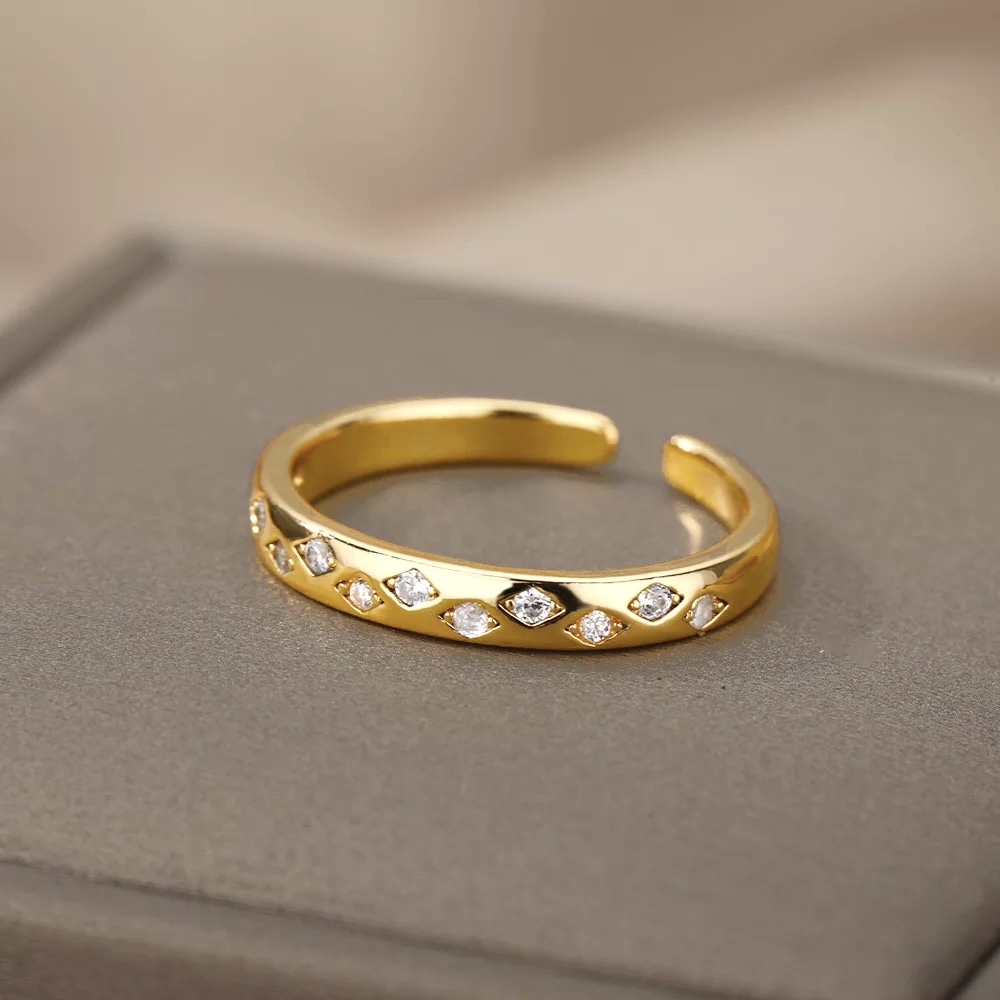 Smuk, justérbar ring, som er prydet med små klare zirkoner, hvilket giver et feminint, elegant udtryk.