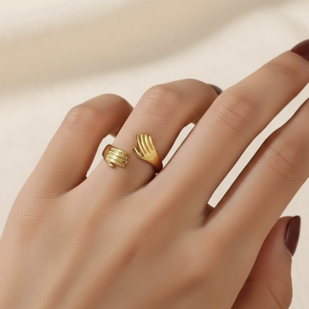 Super fin "kramme"-ring af rustfrit ædelstål. Et kram symboliserer kærlighed og omsorg og minder dig om at omfavne alle aspekter af livet. Ringen er den perfekte gave til én, du holder af, som vil blive mindet om, hvor meget du holder af vedkommende ❤️