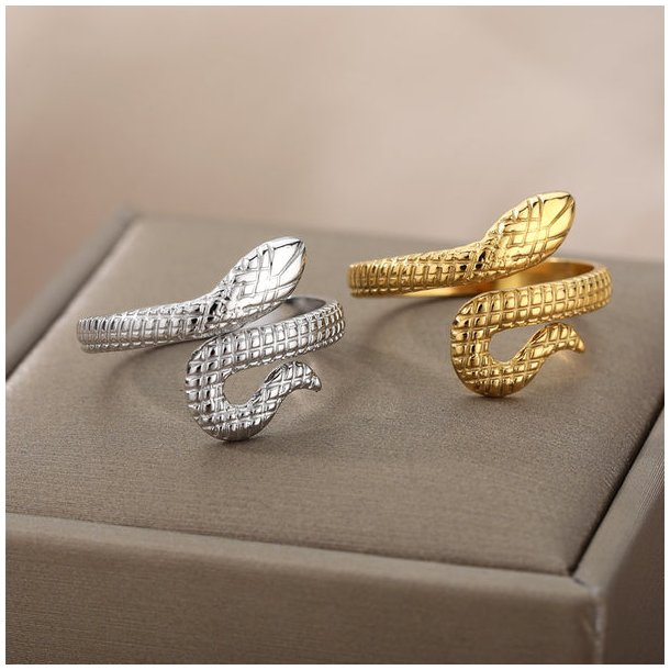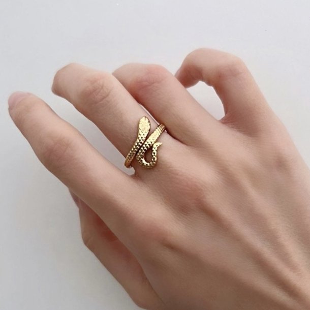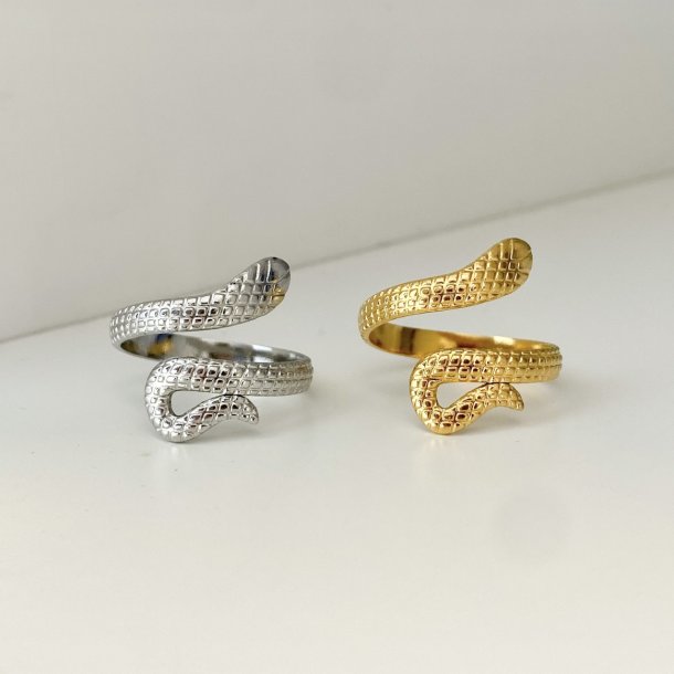 Justérbar slange-ring med en flot, struktureret overflade. Ringen er udført i et moderne, feminint design.