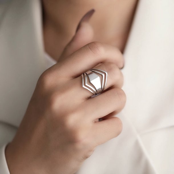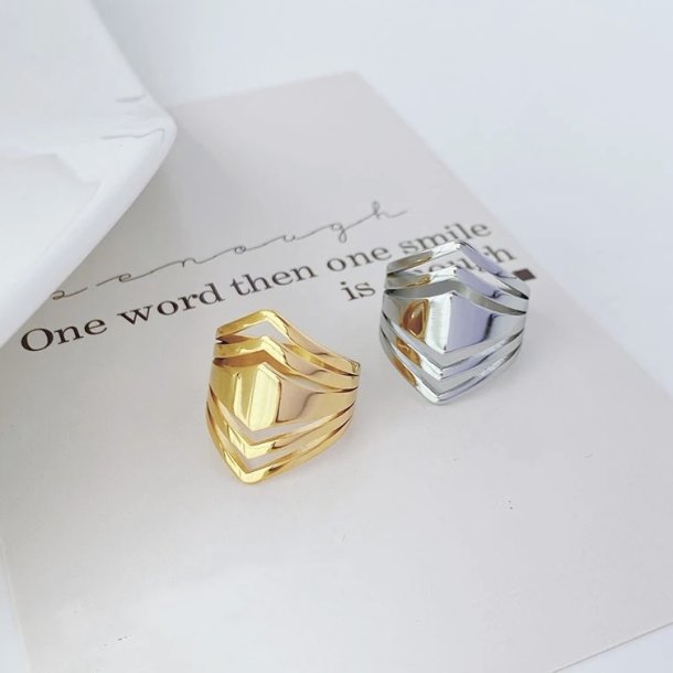 Flot ring i rustfrit ædelstål. Ringen er udført i et unikt og moderne design og passer til både hverdag og fest.