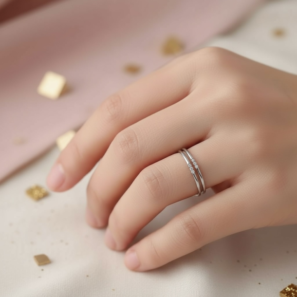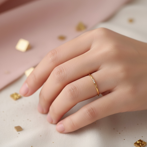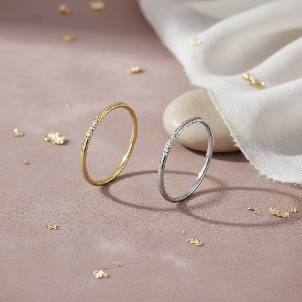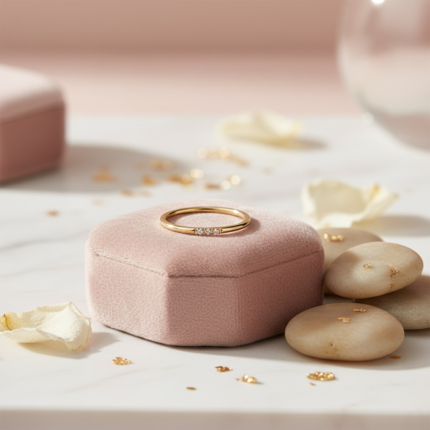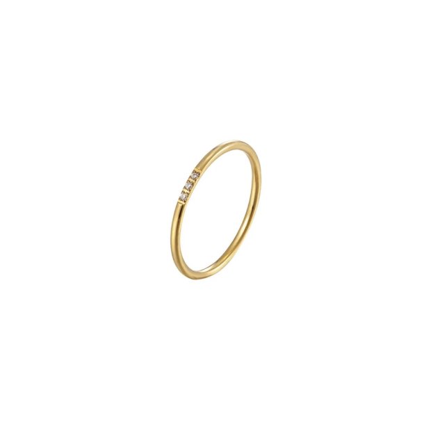 Enkel, smal ring i rustfrit ædelstål. Ringen er prydet med tre små zirkoner, som giver et eksklusivt, feminint udtryk.
