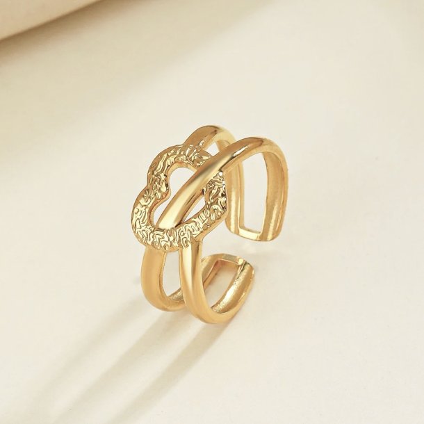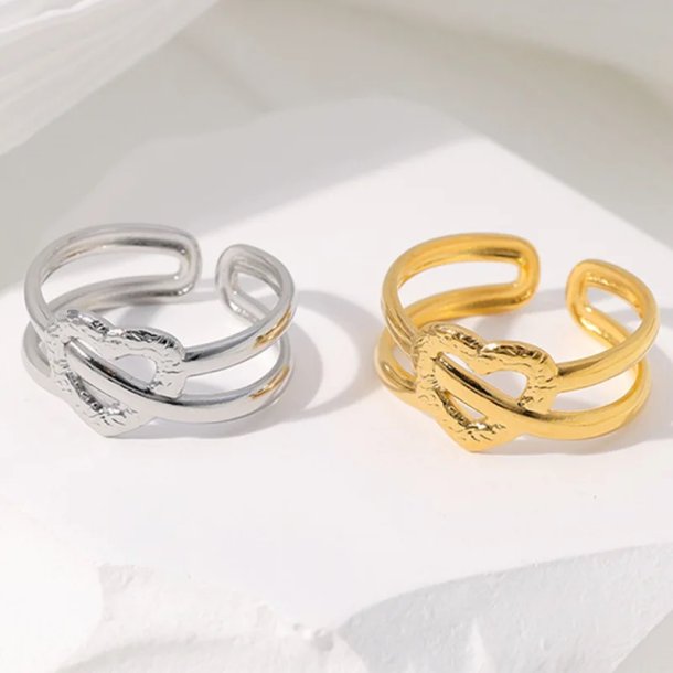 Denne elegante justerbare hjerte-ring er lavet af rustfrit ædelstål, der gør den både holdbar og modstandsdygtig over for vand, sved og parfume. Et must-have smykke for enhver stilbevidst kvinde.
