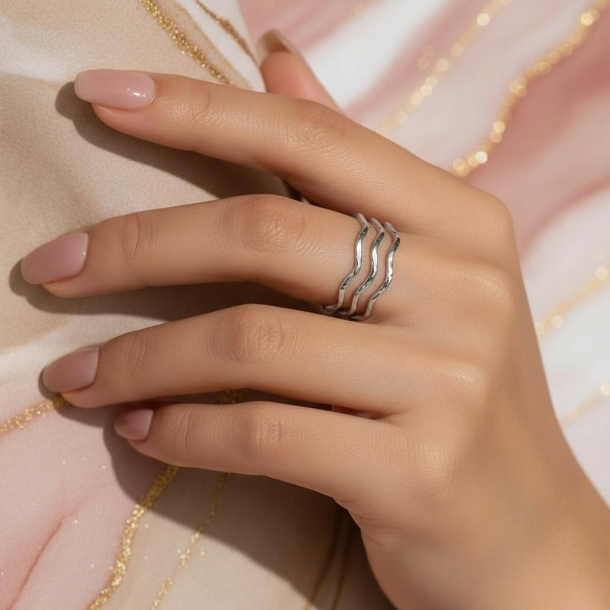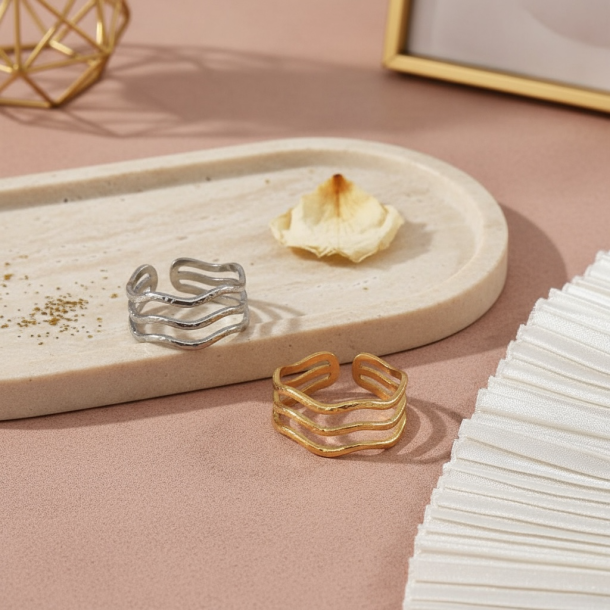 Flot, justerbar ring i rustfrit ædelstål. Ringen er udført i et moderne, unikt design og passer til ethvert look.