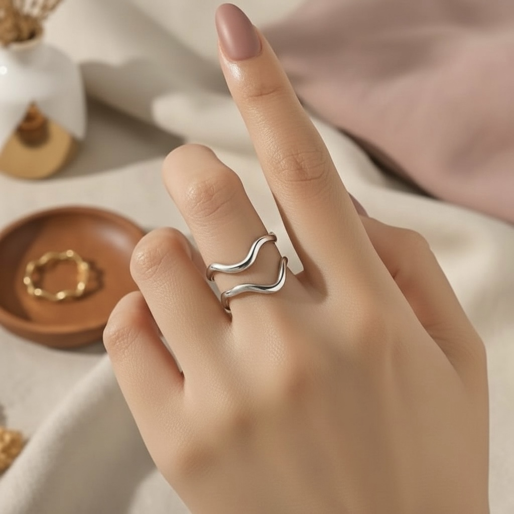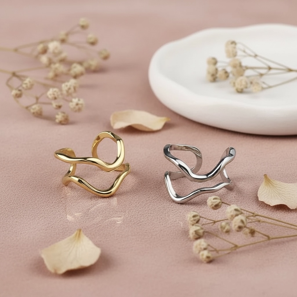 Flot, justerbar ring i rustfrit ædelstål. Ringen er udført i et moderne, unikt design og passer til ethvert look.