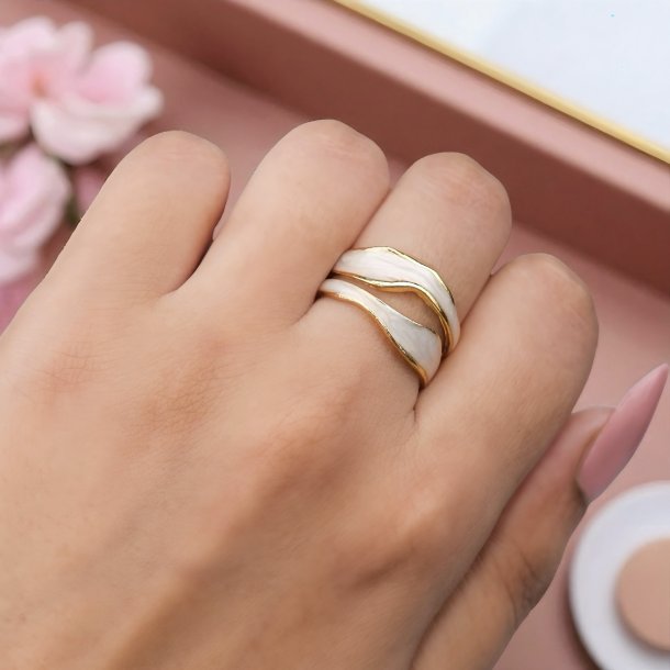 Elegant, justérbar ring med smuk perlemors-effekt. Ringen passer til ethvert look.