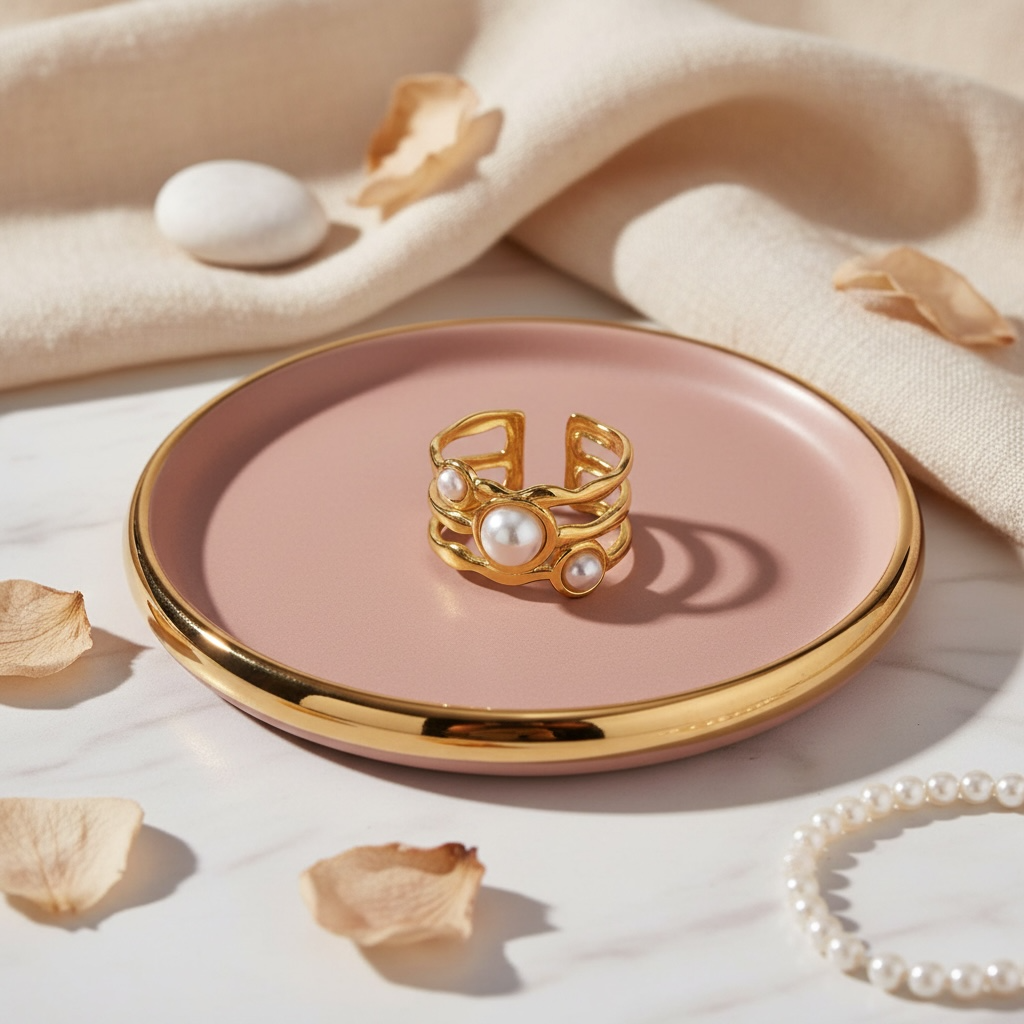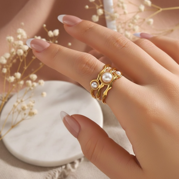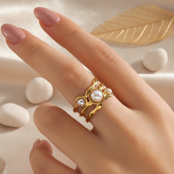 Elegant, justérbar ring med smukke perler. Ringen passer til ethvert look.
