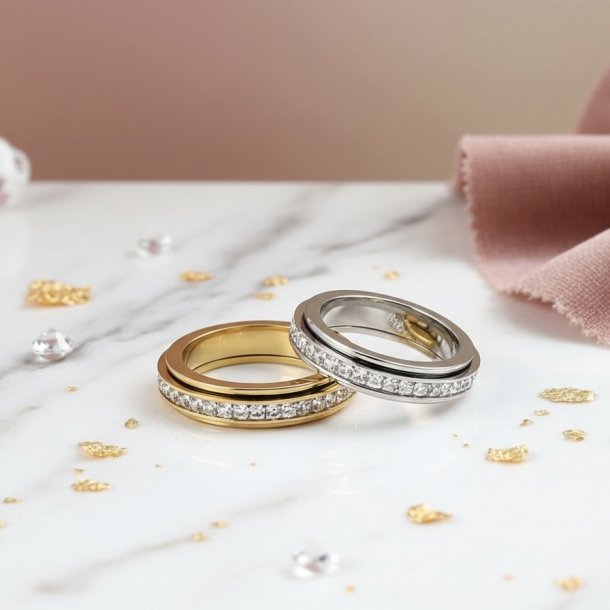 "Crystal Spinning" er perfekt til dig, der ønsker en anti-stress ring med et mere iøjnefaldende og elegant look. Den skiller sig ud fra mere minimalistiske ringe og tilfører et feminint touch til dit outfit.