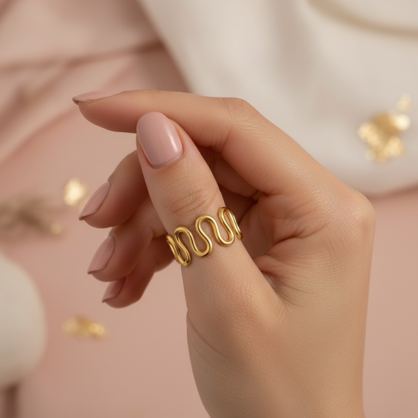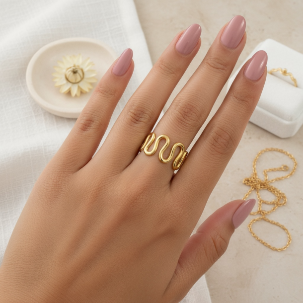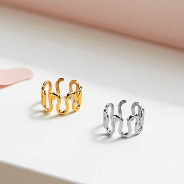 Flot, justerbar ring i rustfrit ædelstål, der kombinerer moderne design med fleksibilitet. Perfekt til enhver lejlighed - den tilføjer et unikt præg til din stil.