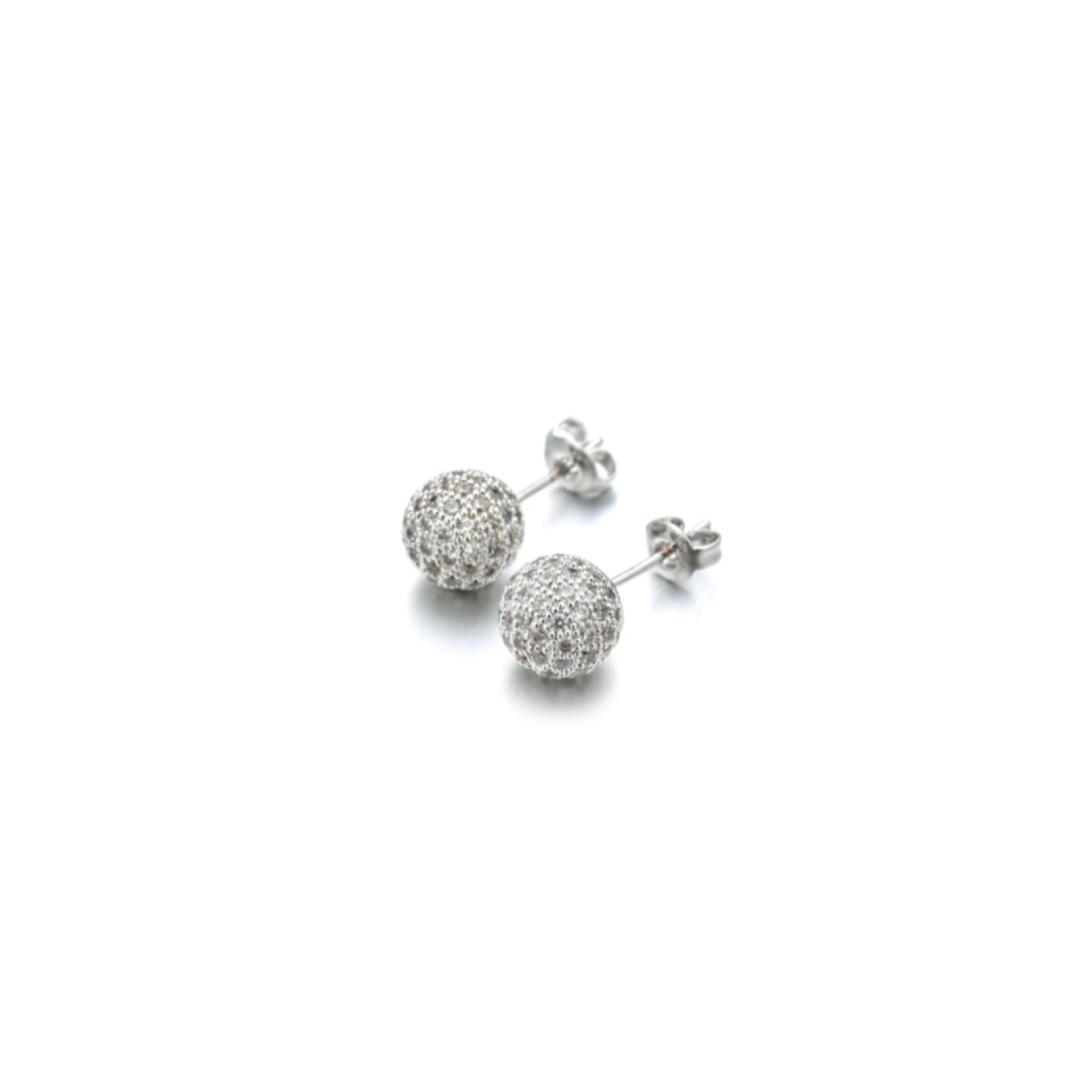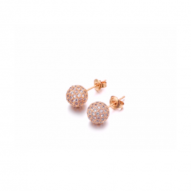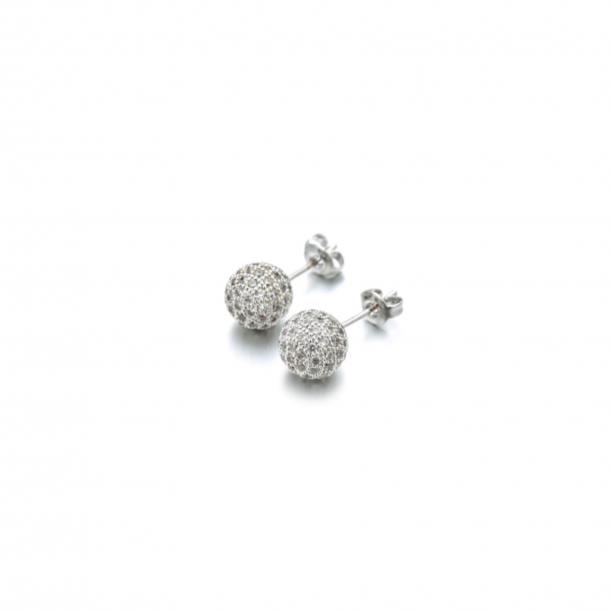 Smukke "kugle"-øreringene fyldt med små, klare,skinnende zirkoner. Øreringene har et eksklusivt, feminint udtryk og passer perfekt til både hverdag og fest.