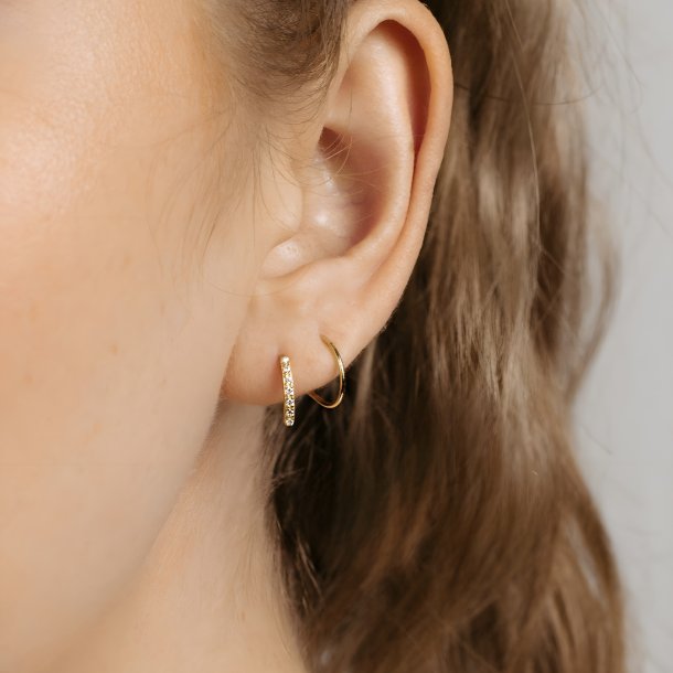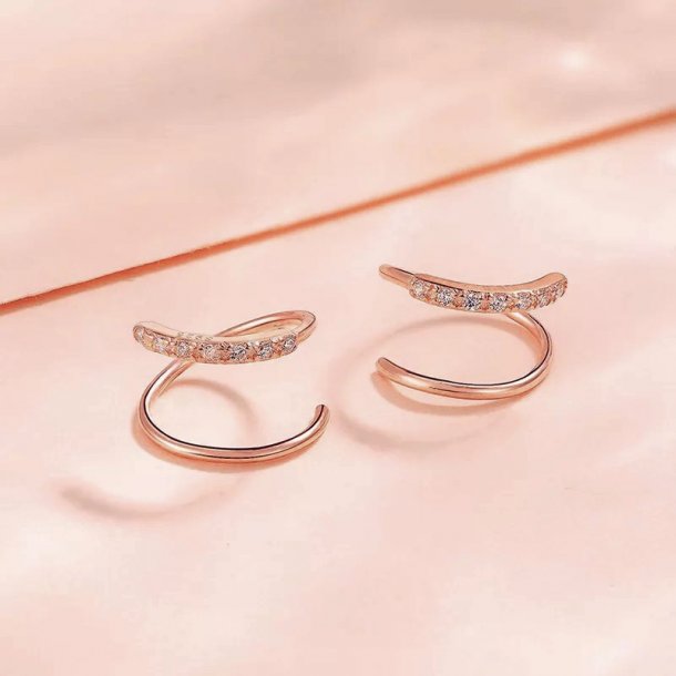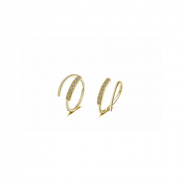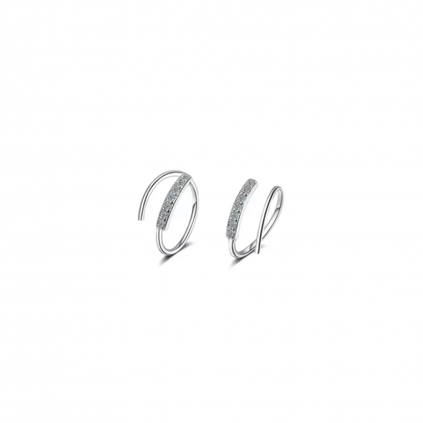 De smukkeste øreringe med små, klare zirkoner. Du glider øreringene på, og drejer rundt til de sidder som om, man har to huller i ørerne. Træk evt. forsigtigt i øreringen. Øreringene passer til ét hul i øret.