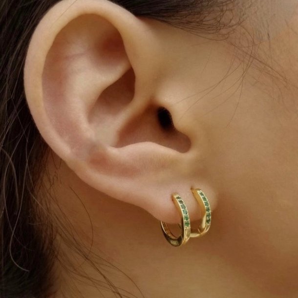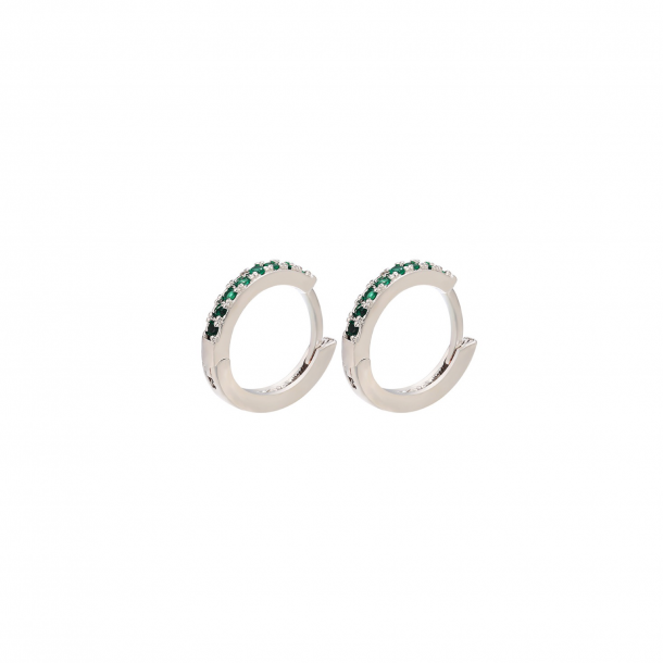 Smukke, små hoops med grønne, skinnende zirkoner. Øreringene er udført i et moderne, feminint design og passer til ethvert look.