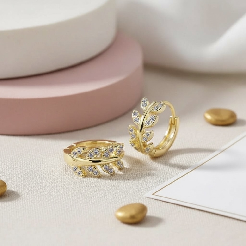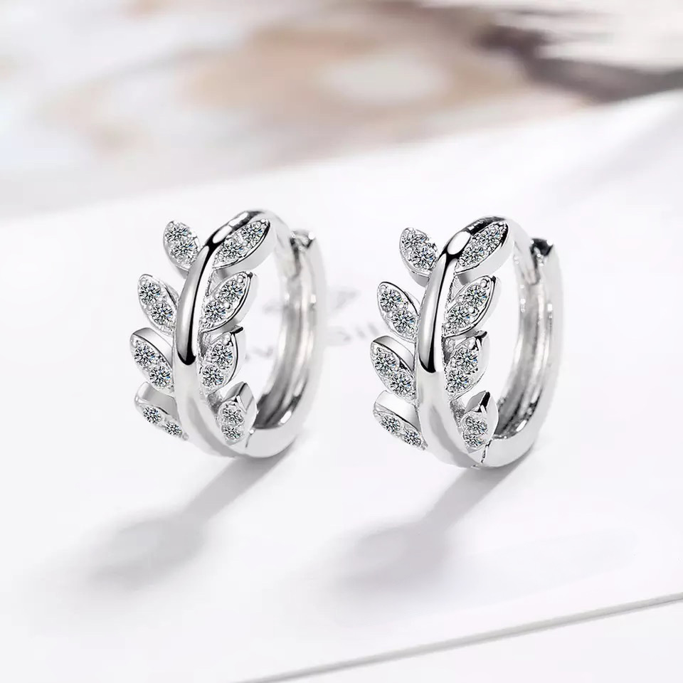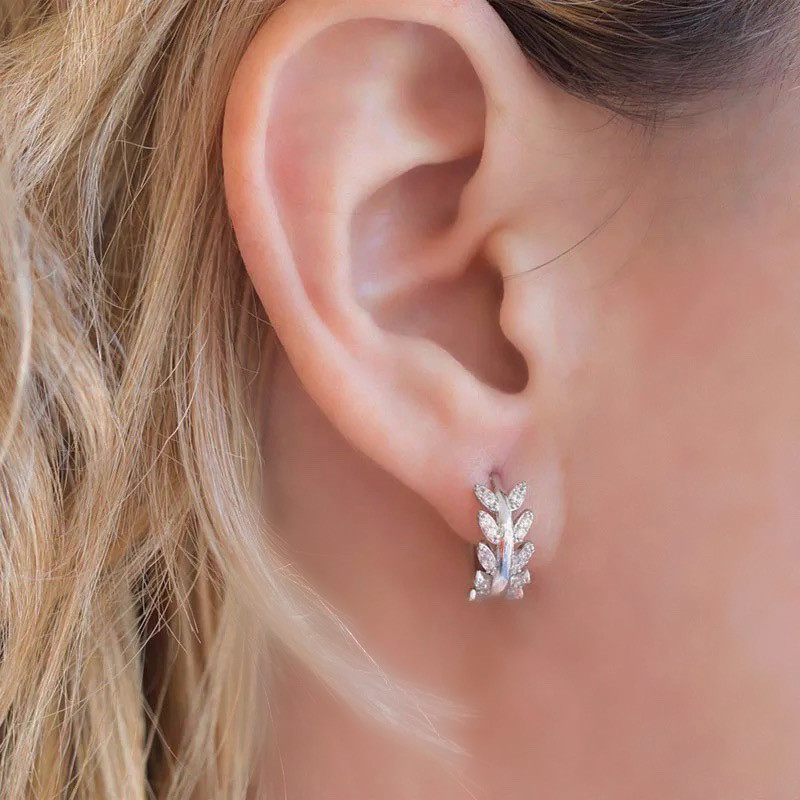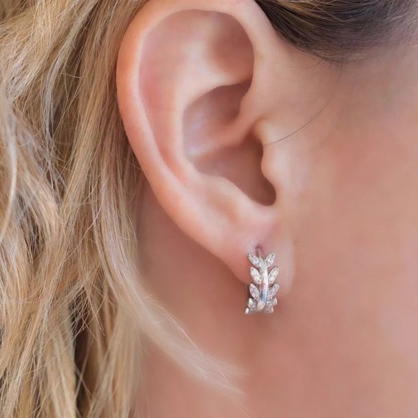 De smukkeste små hoops, hvor bladene er prydet med mikro-zirkoner. Perfekte til den feminine og stilbevidste kvinde. Disse hoops kan matches med ethvert outfit.