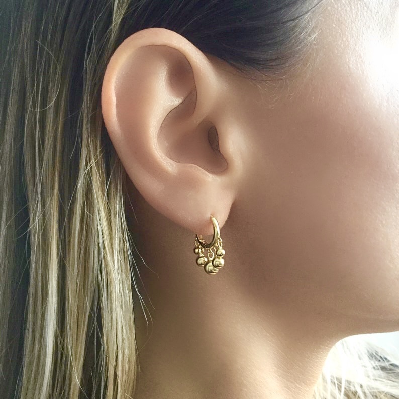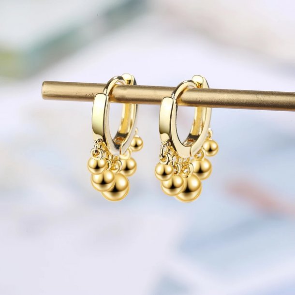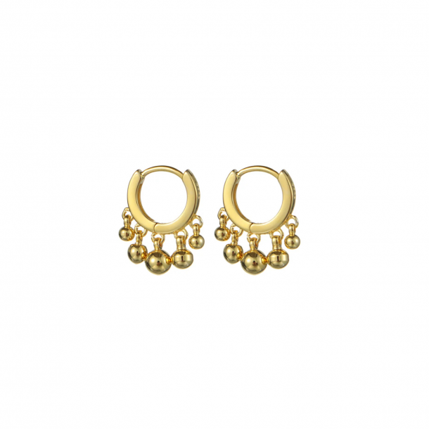 Charmerenede hoops med små kugle-vedhæng. Øreringene er udført i et moderne, feminint design og passer perfekt til både hverdag og fest.