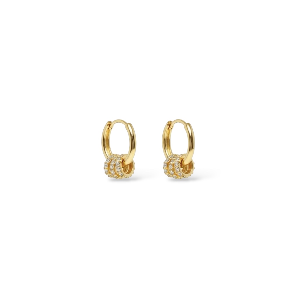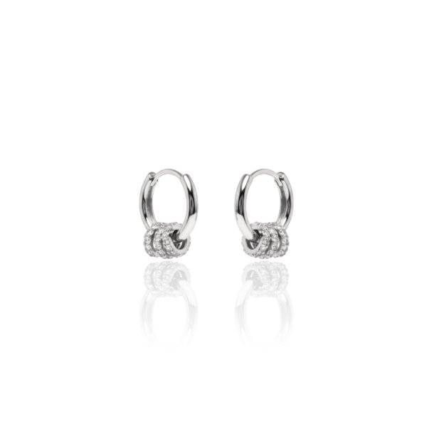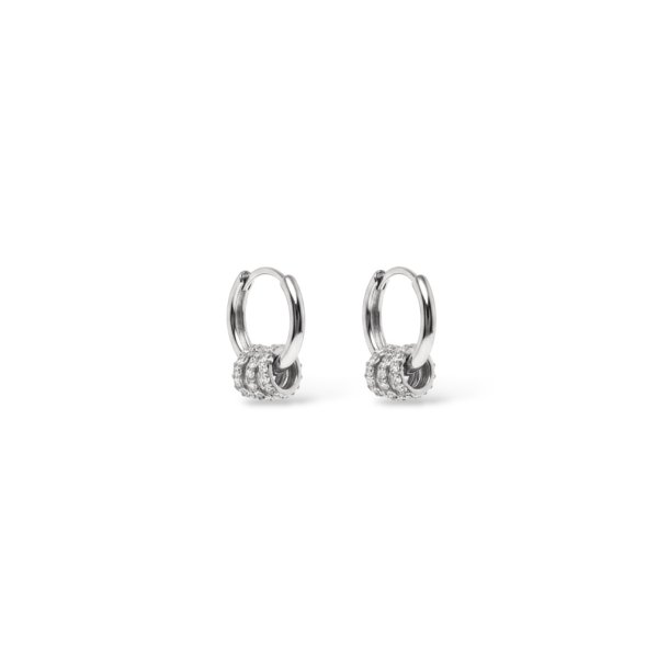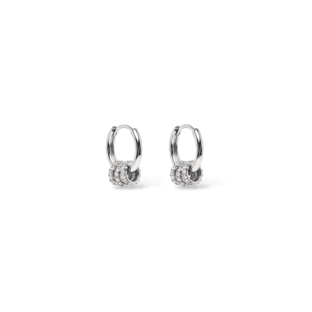 Smukke små, hoops med tre runde vedhæng med klare zirkoner. Øreringene kan bruges med eller uden vedhængene. Øreringene har et eksklusivt, feminint udtryk og passer perfekt til både hverdag og fest.
