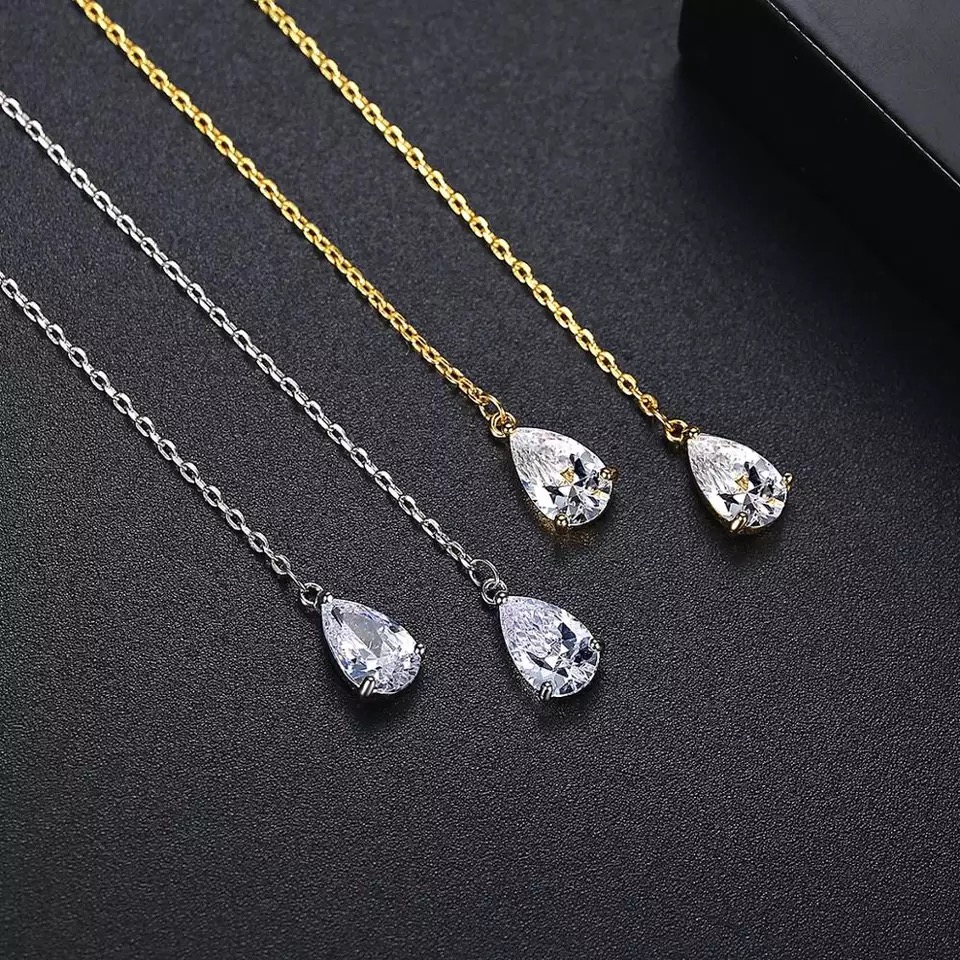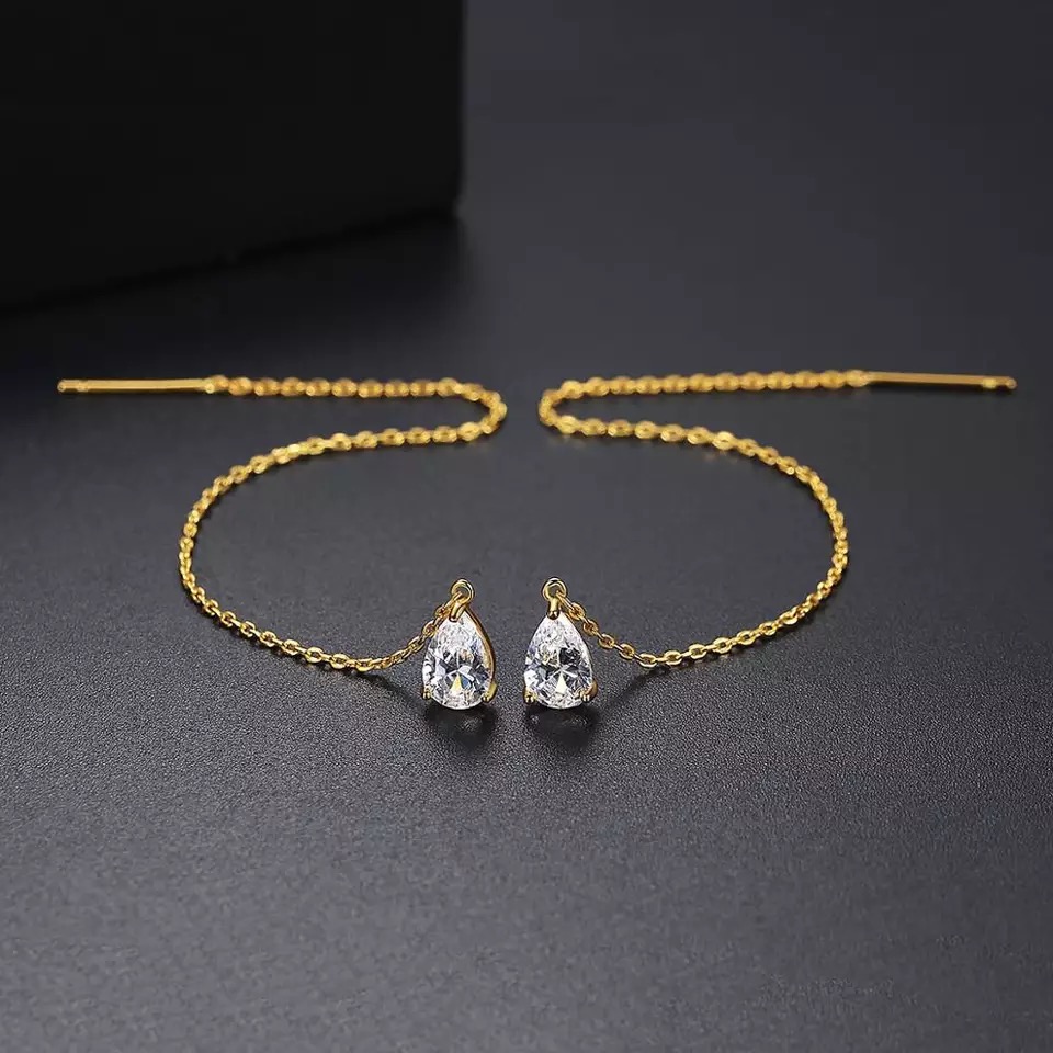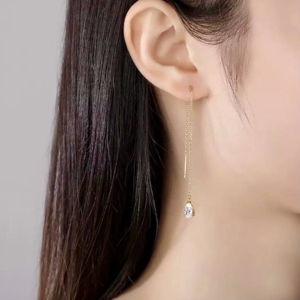 Flotte lange øreringe, som afsluttes med en smuk, dråbeformet zirkon. Øreringene kan bruges alene eller matches med dine andre yndlings-øreringe. Øreringene glides let gennem øret.