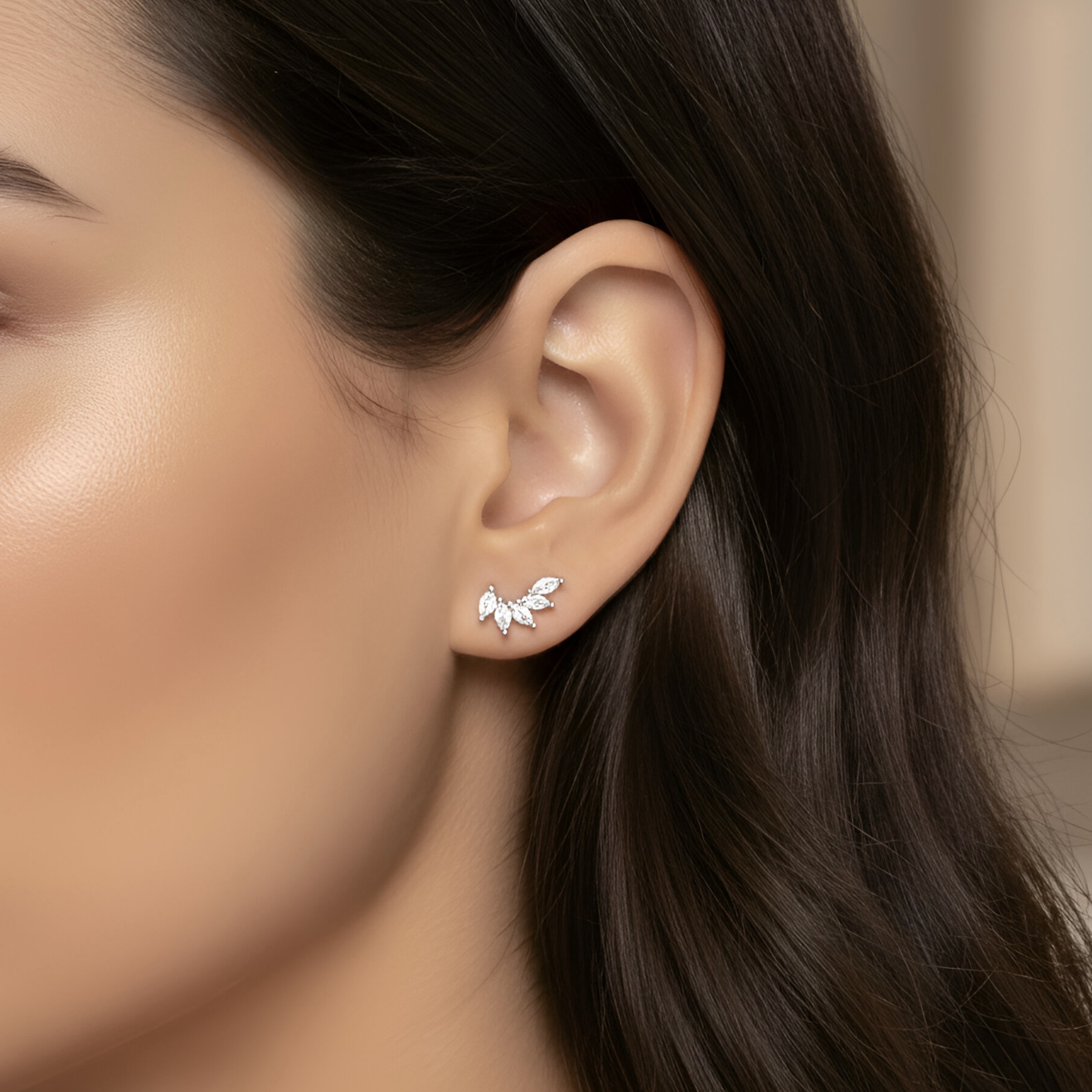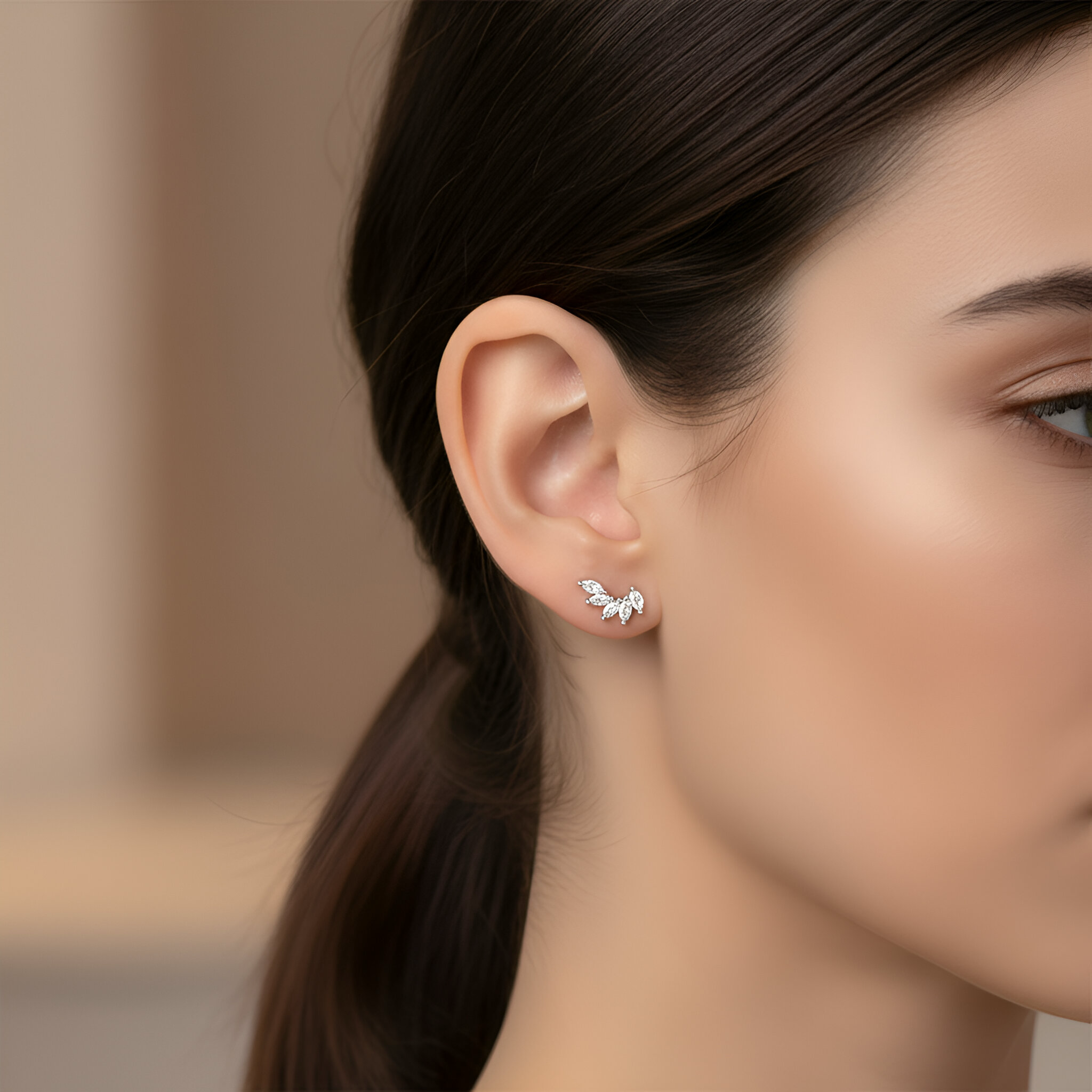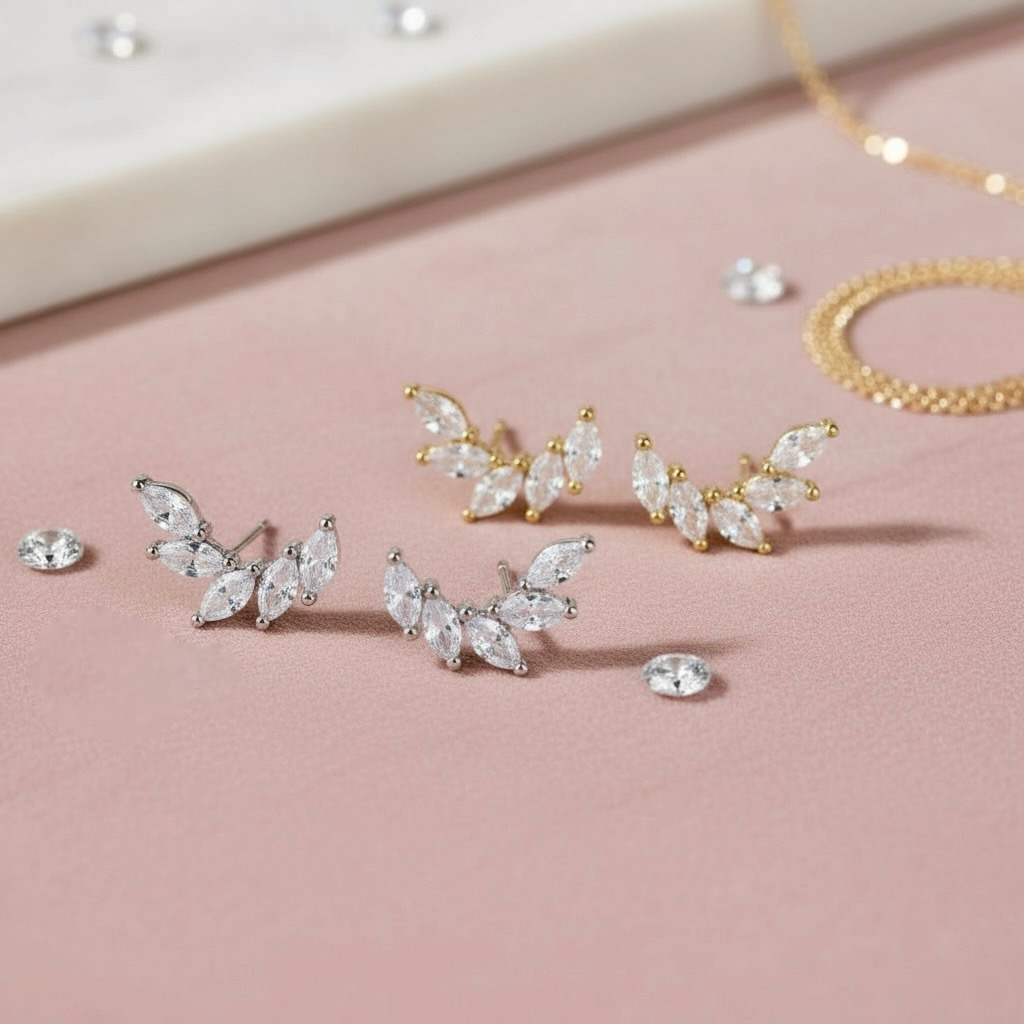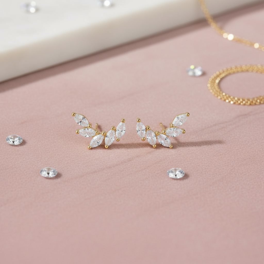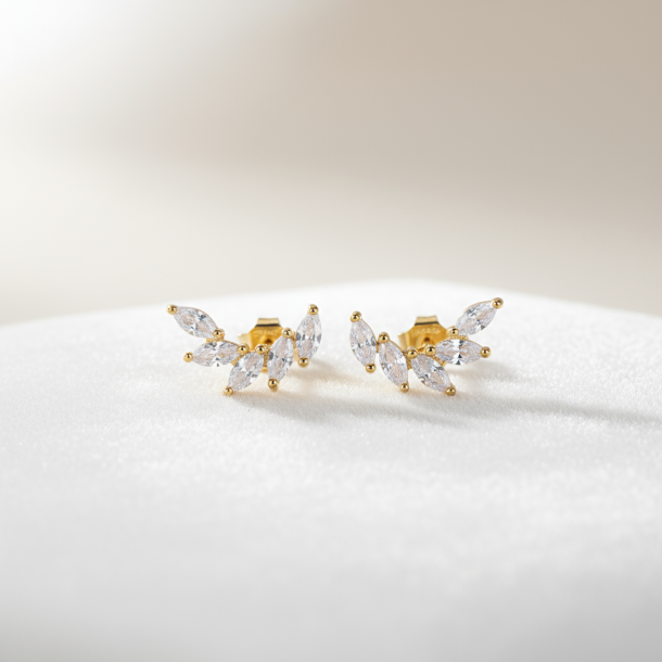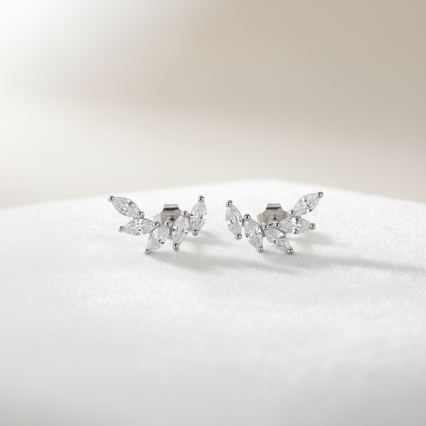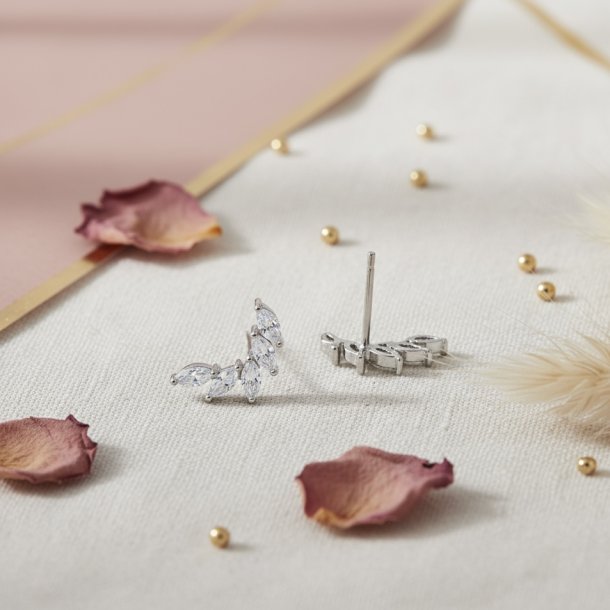 De smukkeste øreringe, som sidder flot på øret. Øreringene er prydet med klare, skinnende zirkoner. Øreringene har et eksklusivt, feminint udtryk og passer perfekt til både hverdag og fest.