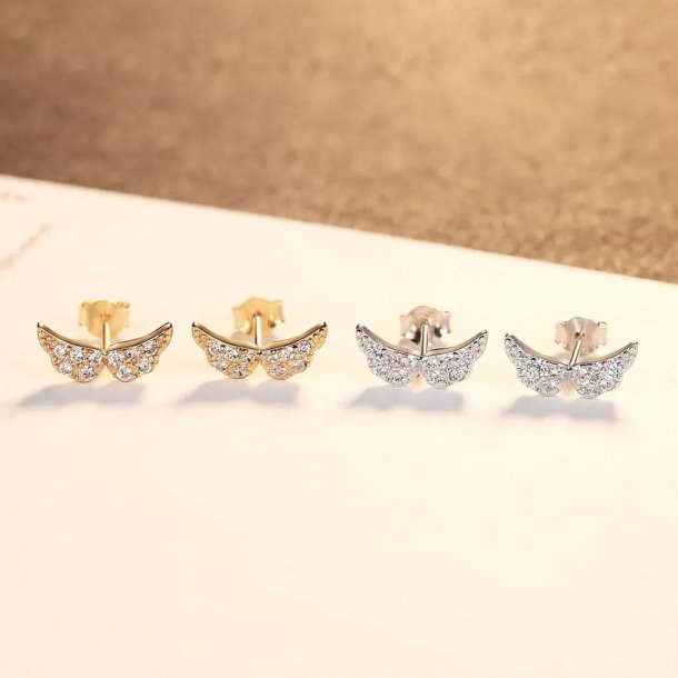 Smukke øreringe formet som englevinger. Øreringene er fyldt med små, klare zirkoner og passer perfekt til både hverdag og fest.