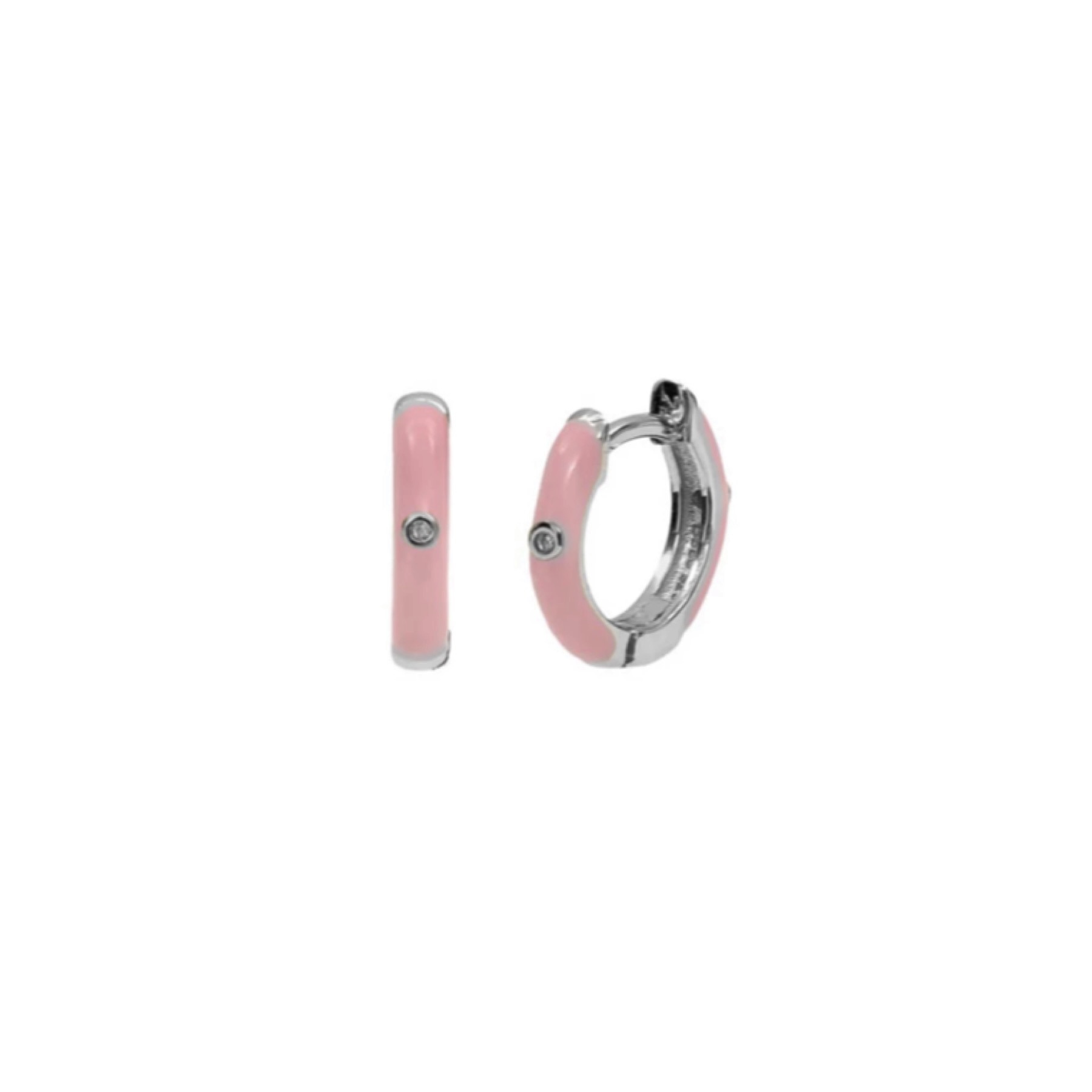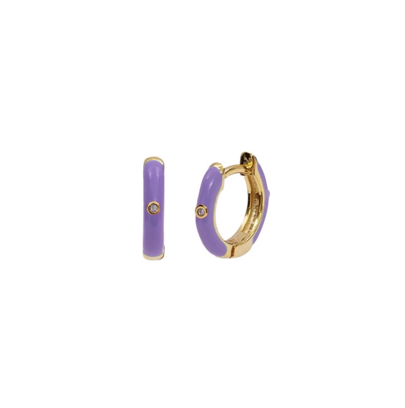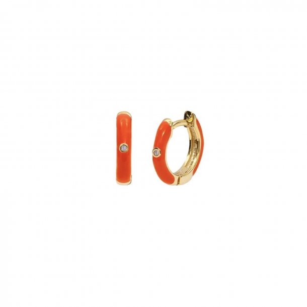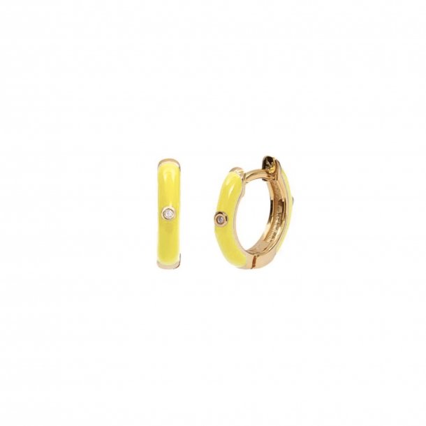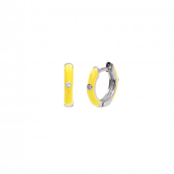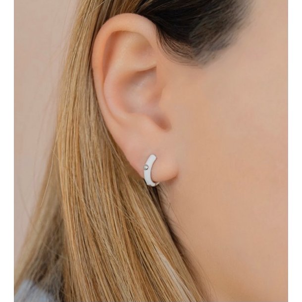 Små, fine enamel-hoops, som findes i et væld af farver. Øreringene er prydet med en lille klar zirkon, som giver et feminint udtryk.