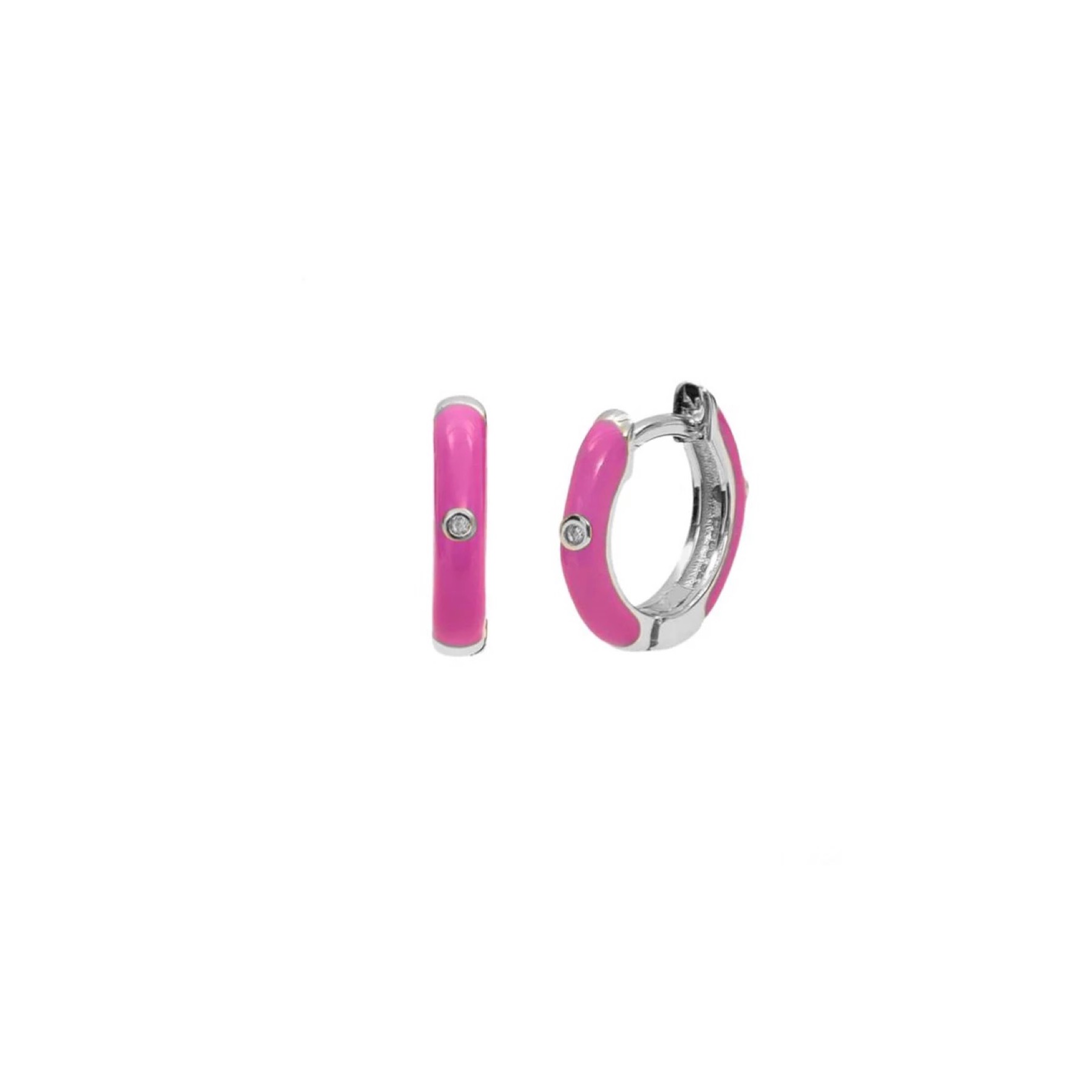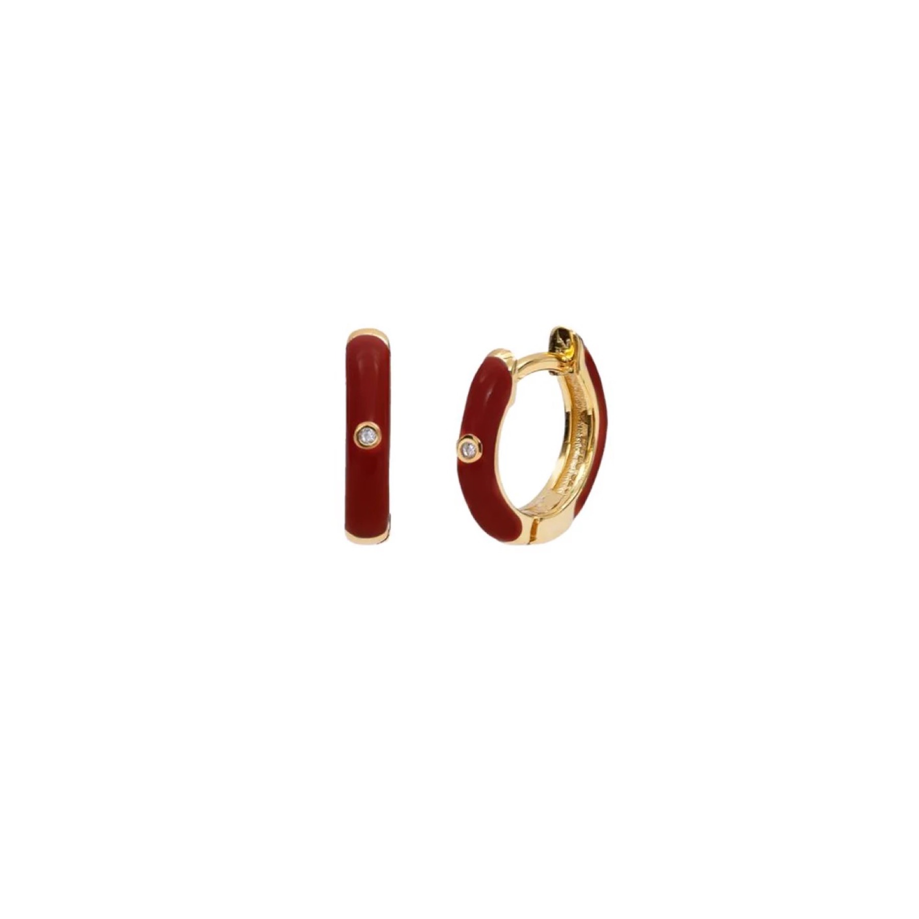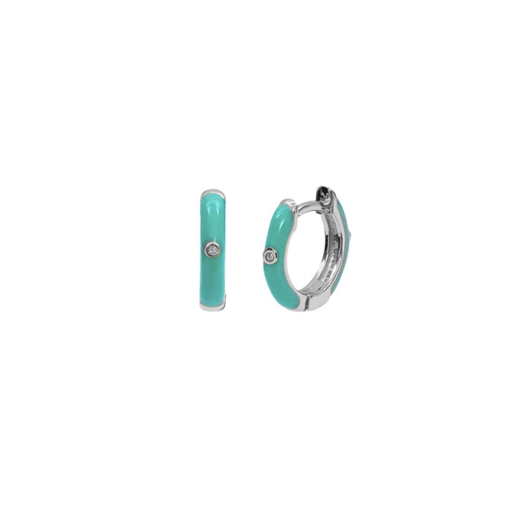 Små, fine enamel-hoops, som findes i et væld af farver. Øreringene er prydet med en lille klar zirkon, som giver et feminint udtryk.