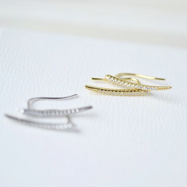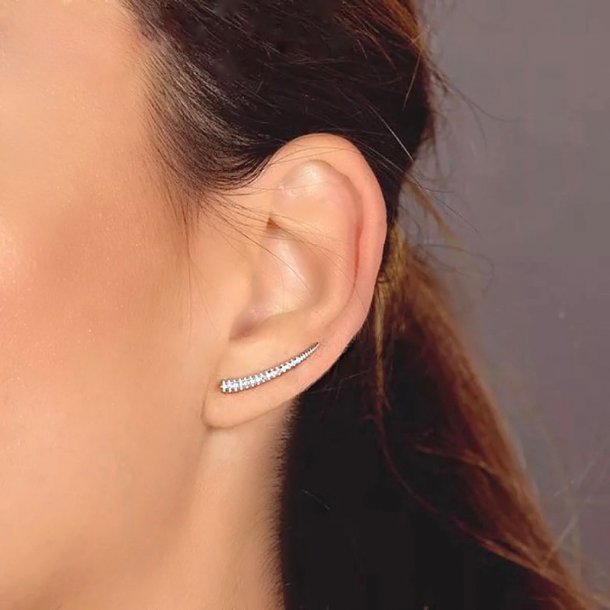 De smukkeste øreringe, som lægger sig flot opad øret. Øreringene er fyldt med små, klare, skinnende zirkoner. Øreringene har feminint, eksklusivt udtryk og passer perfekt til både hverdag og fest.