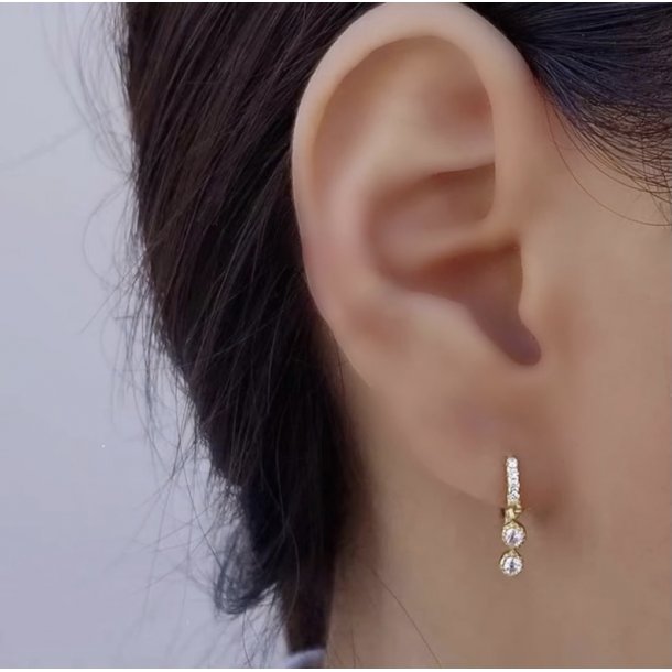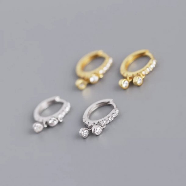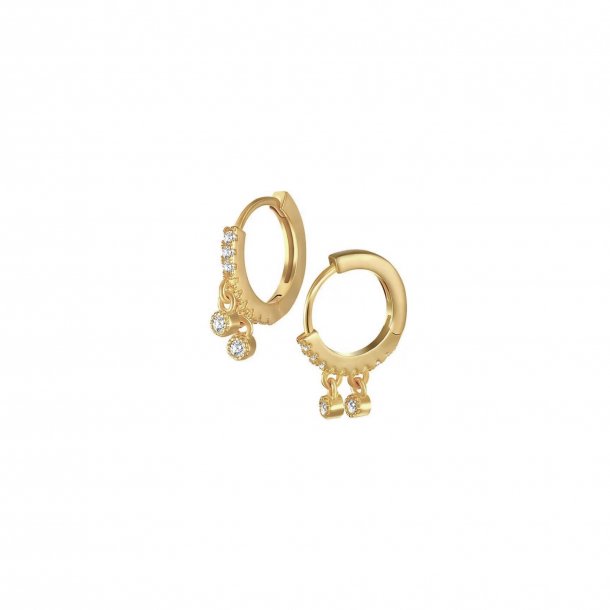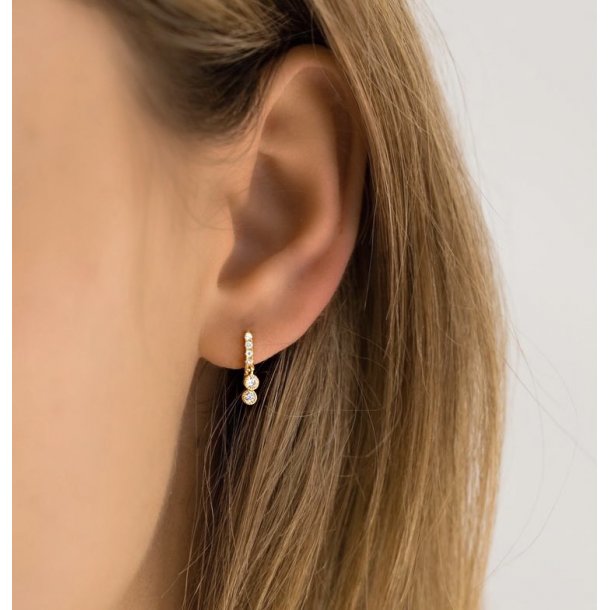 De smukkeste hoops med to små zirkoner som vedhæng. Selve øreringen er også prydet med skinnende zirkoner, hvilket giver et feminint, eksklusivt udtryk.