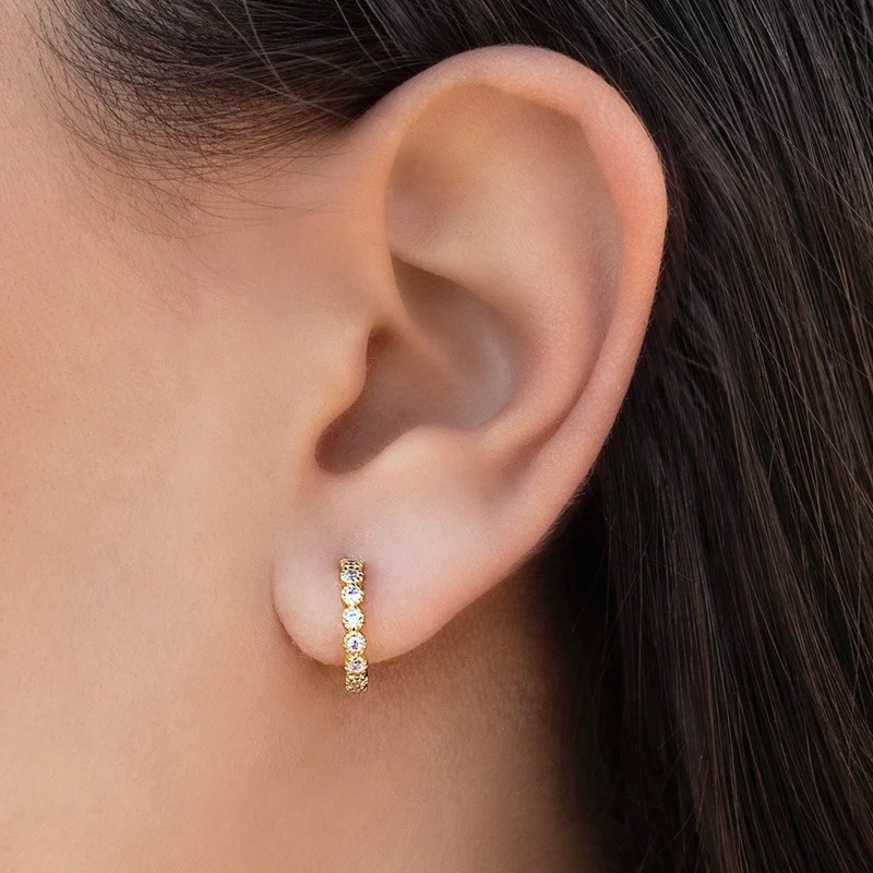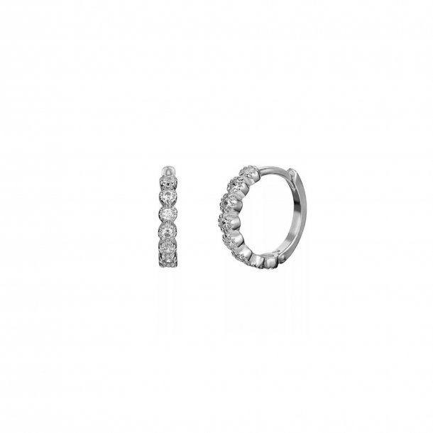 Fine små hoops med runde, klare zirkoner. Øreringene har et tidløst, feminint udtryk og kan matches med ethvert outfit.