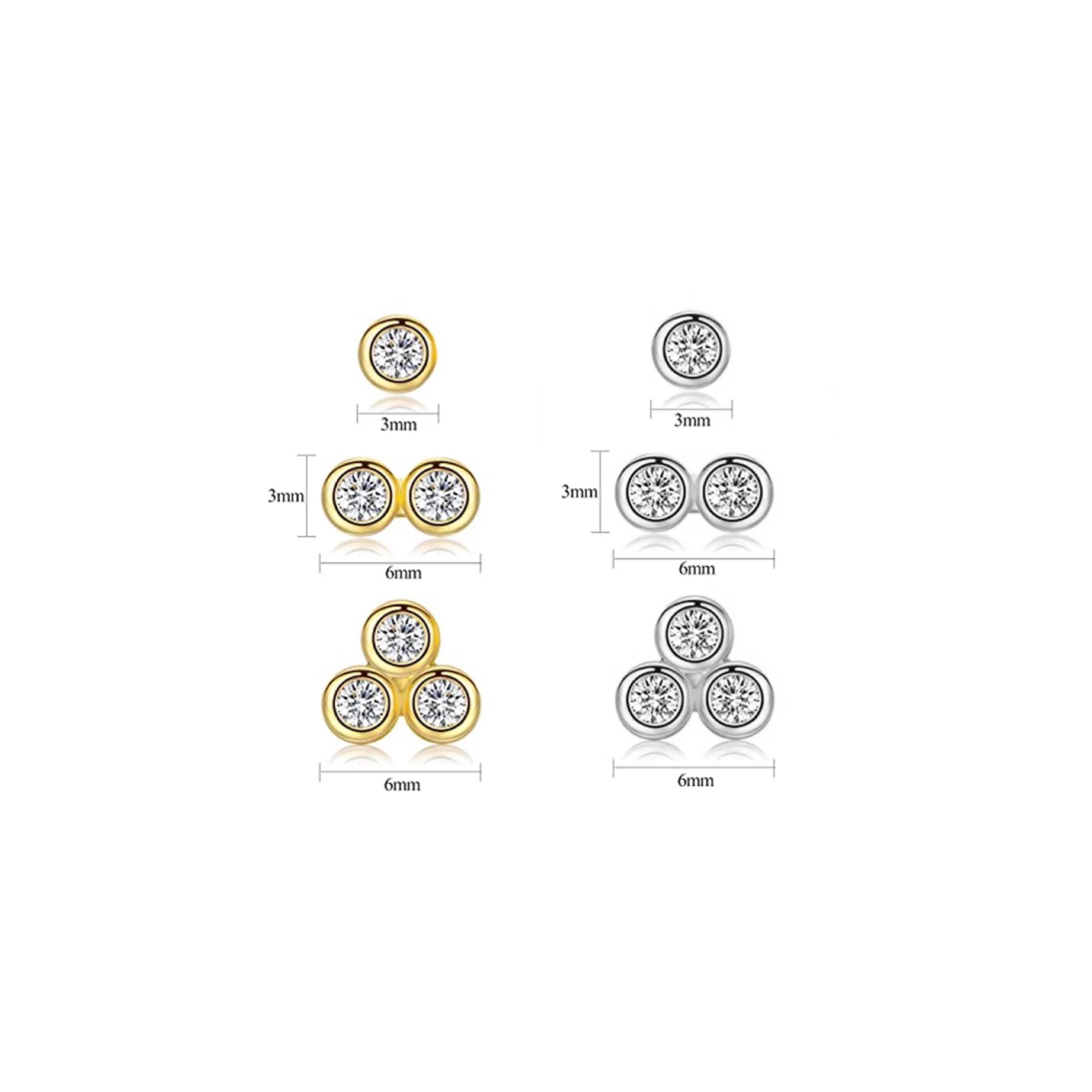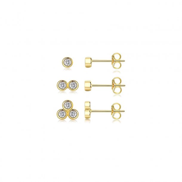Super fint øreringe-sæt, som består af 3 forskellige ørestikkere med små, klare zirkoner. Perfekt til dig med flere huller i ørerne.