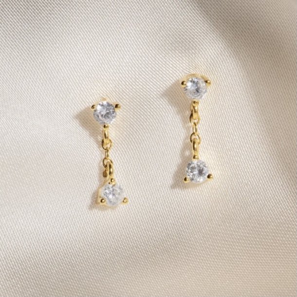 Fine øreringe prydet med smukke, klare zirkoner. Øreringene er udført i et feminint, tidløst design og kan matches med ethvert outfit.