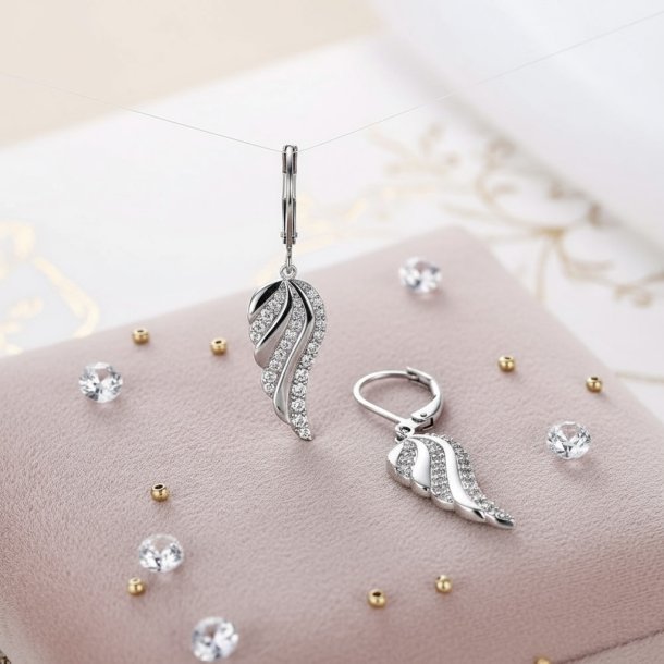 Flotte øreringe med de smukkeste vedhæng, som er prydet med små, klare zirkoner. Øreringene er udført i et feminint, eksklusivt design.