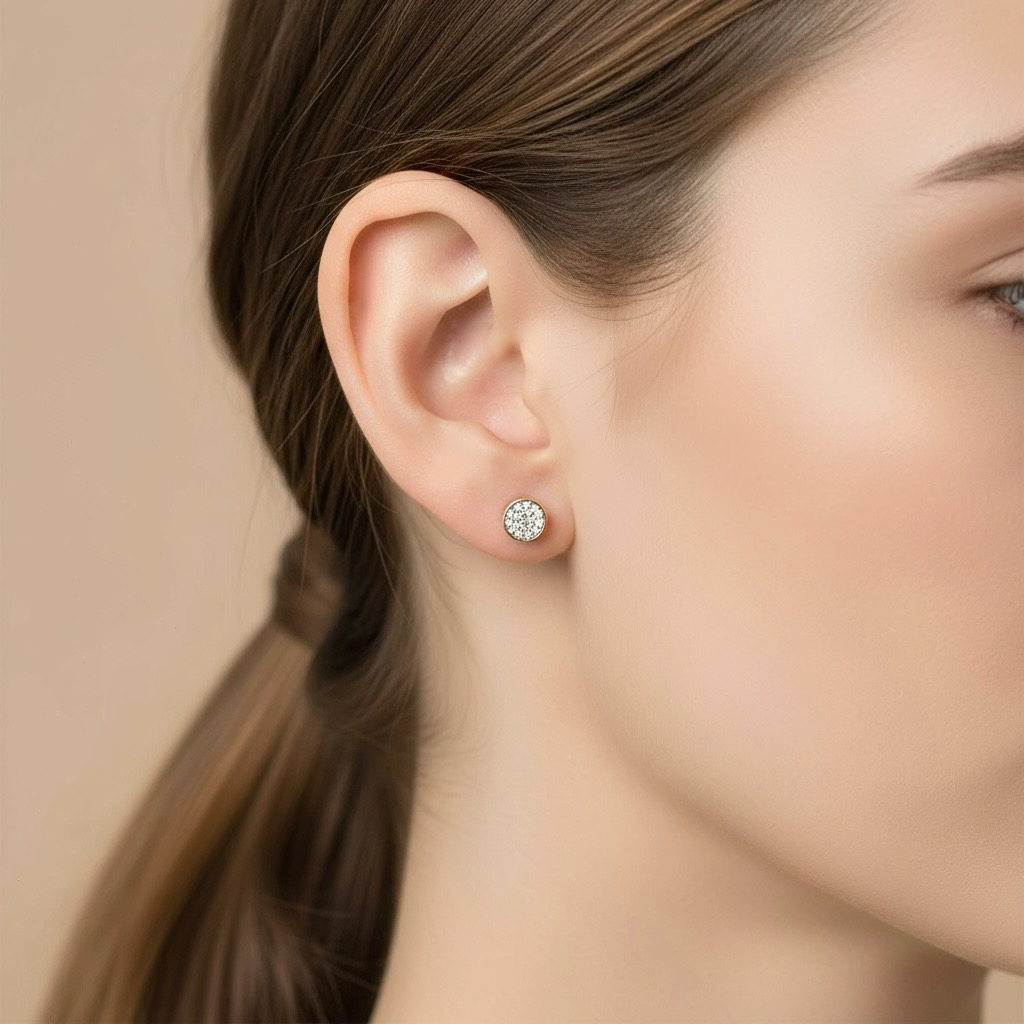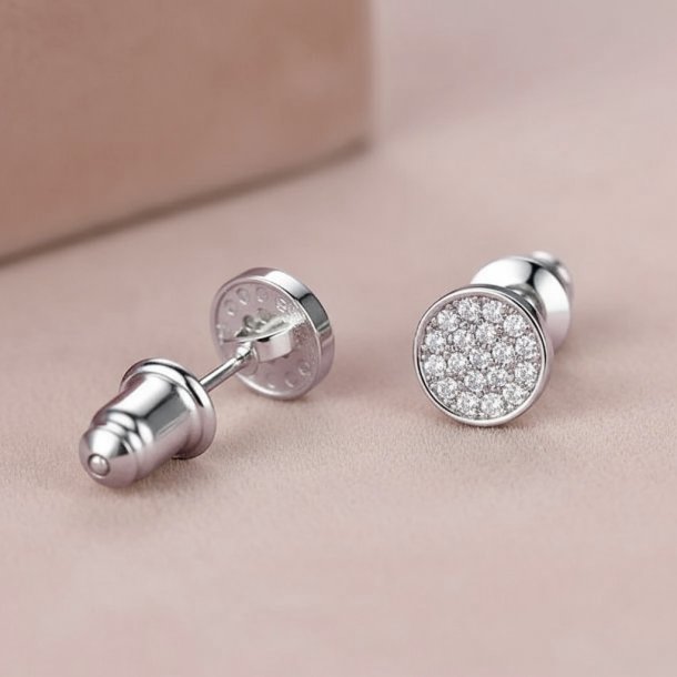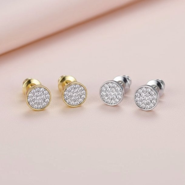 Smukke små, cirkel-øreringe, som er prydet med klare, skinnende zirkoner. Øreringene kan matches med ethvert outfit.