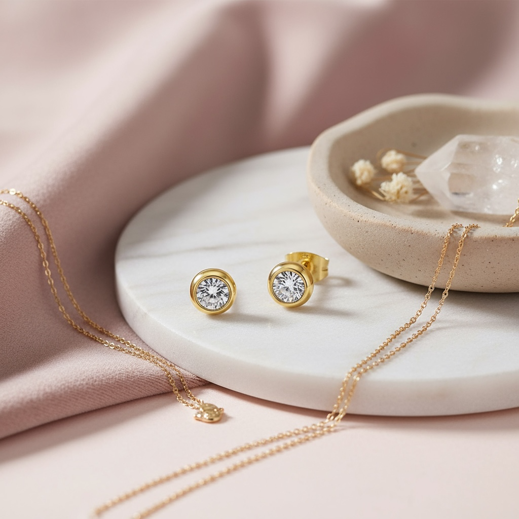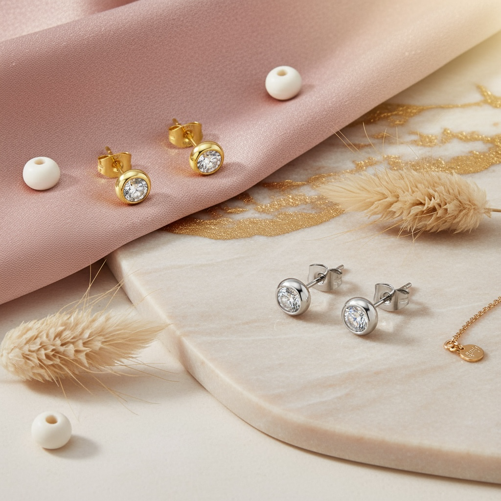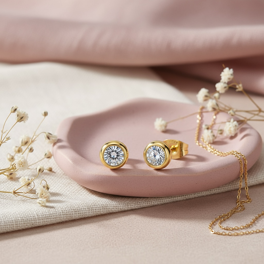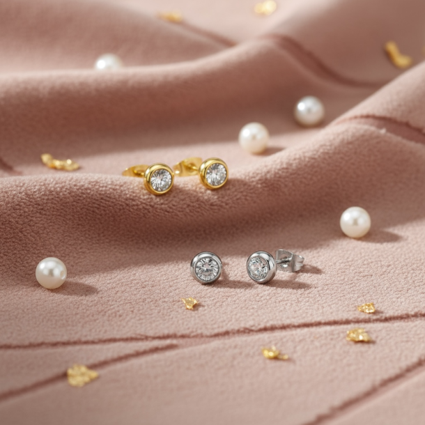 Smukke, små, klassiske øreringe med en lille, klar zirkon. Øreringene kan matches med ethvert outfit.