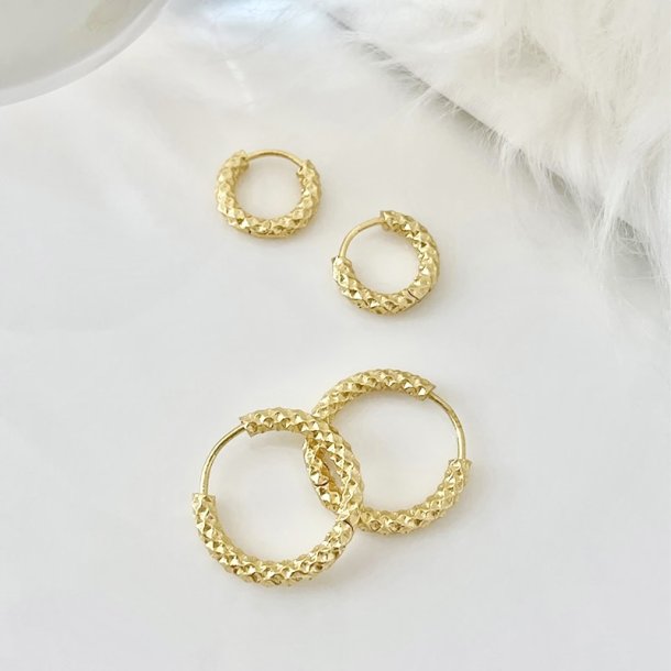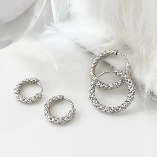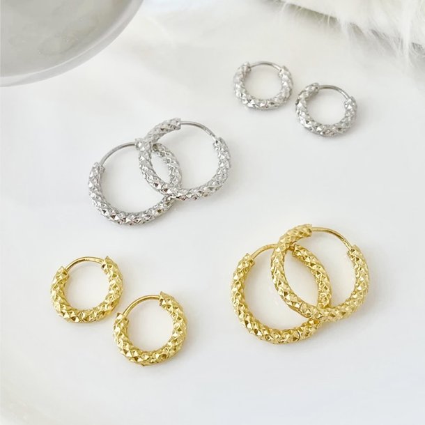 Lækre hoops med en flot, struktureret overflade. Øreringene fås i to forskellige størrelser og kan matches med ethvert outfit.