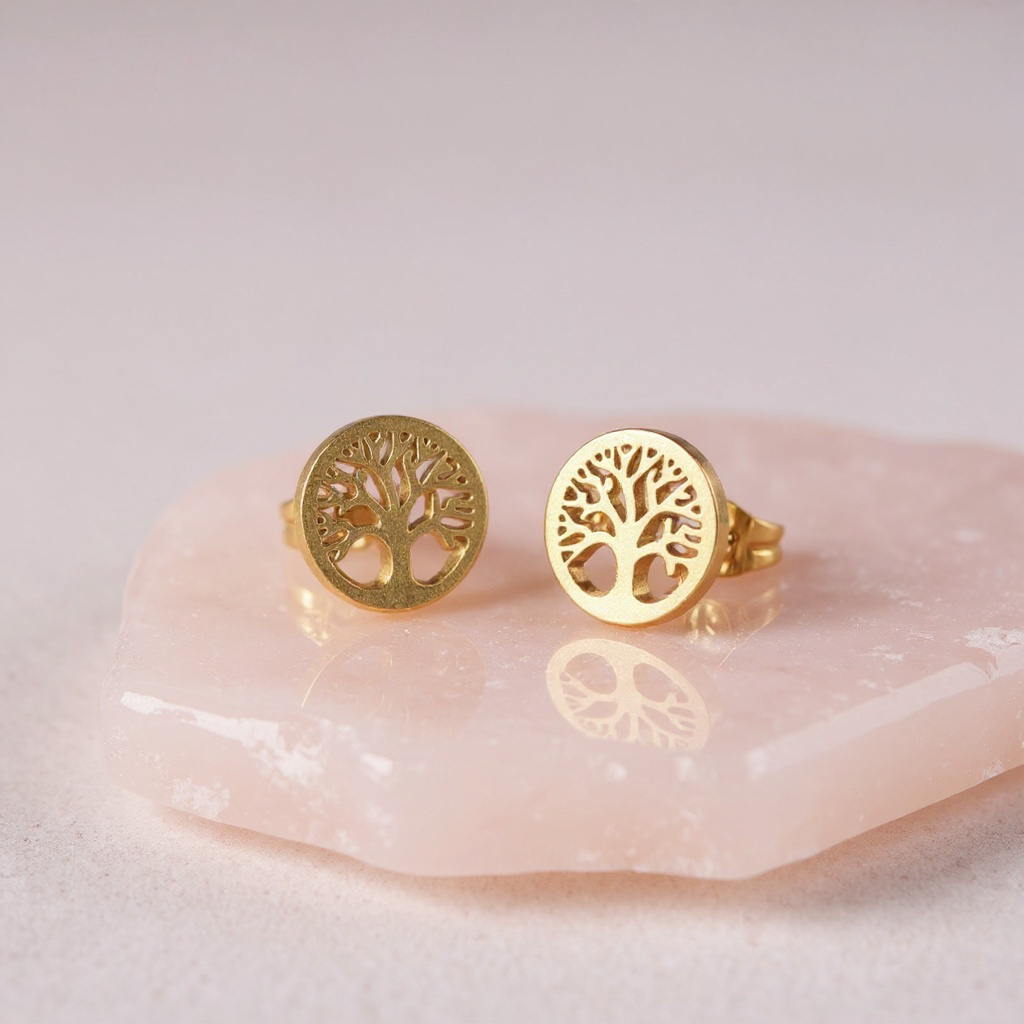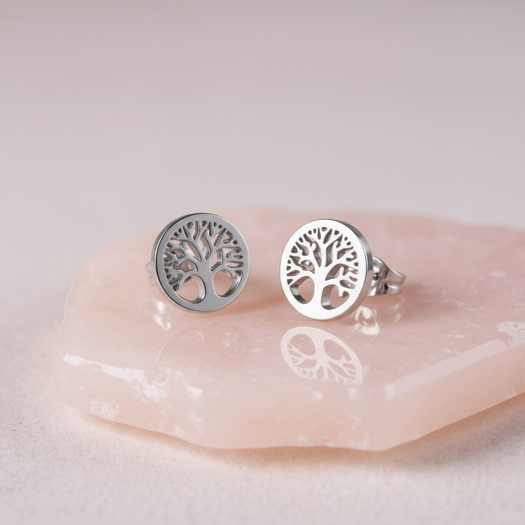 Fine, runde øreringe med "Livets Træ". Øreringene er af rustfrit ædelstål og passer til ethvert outfit.