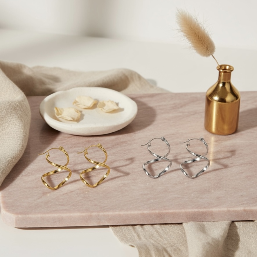 Flotte spiral-øreringe af rustfrit ædelstål. Øreringene er udført i et elegant, feminint design og kan pifte ethvert outfit op.