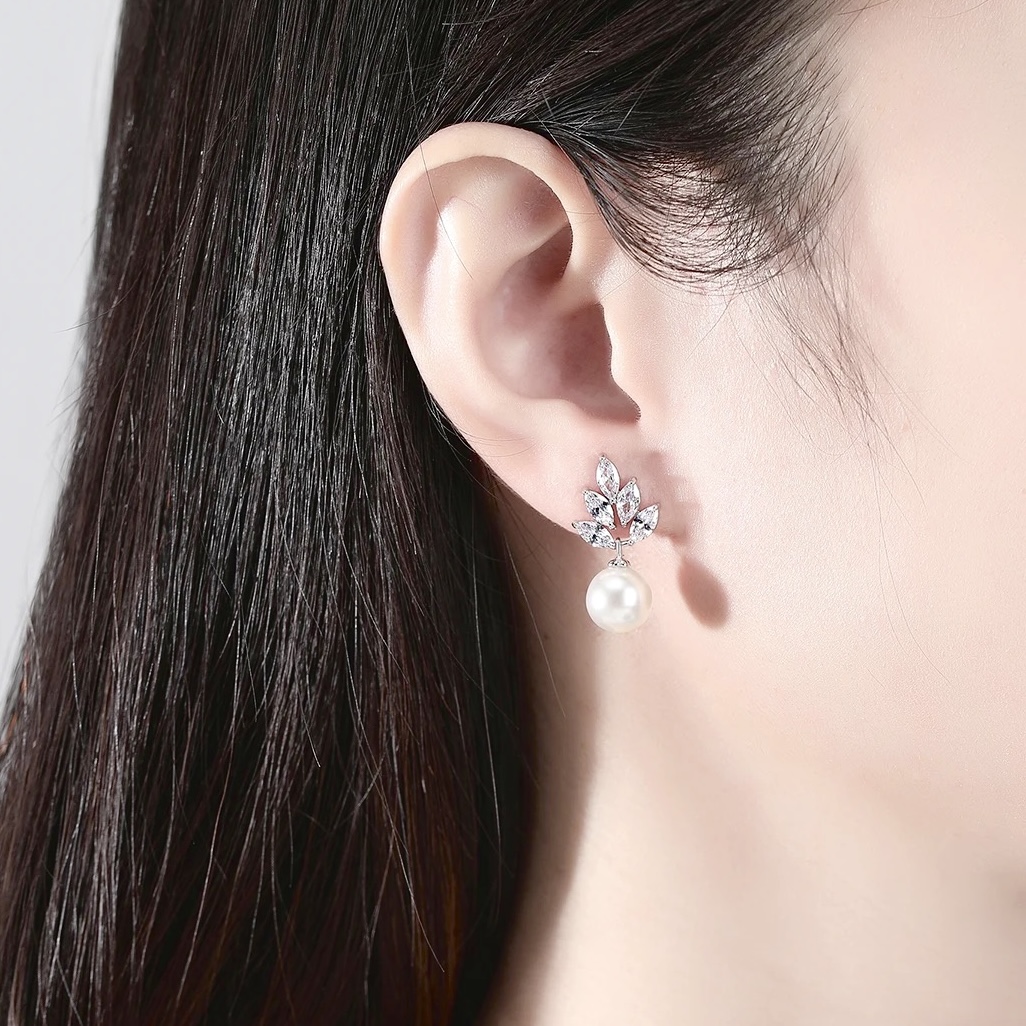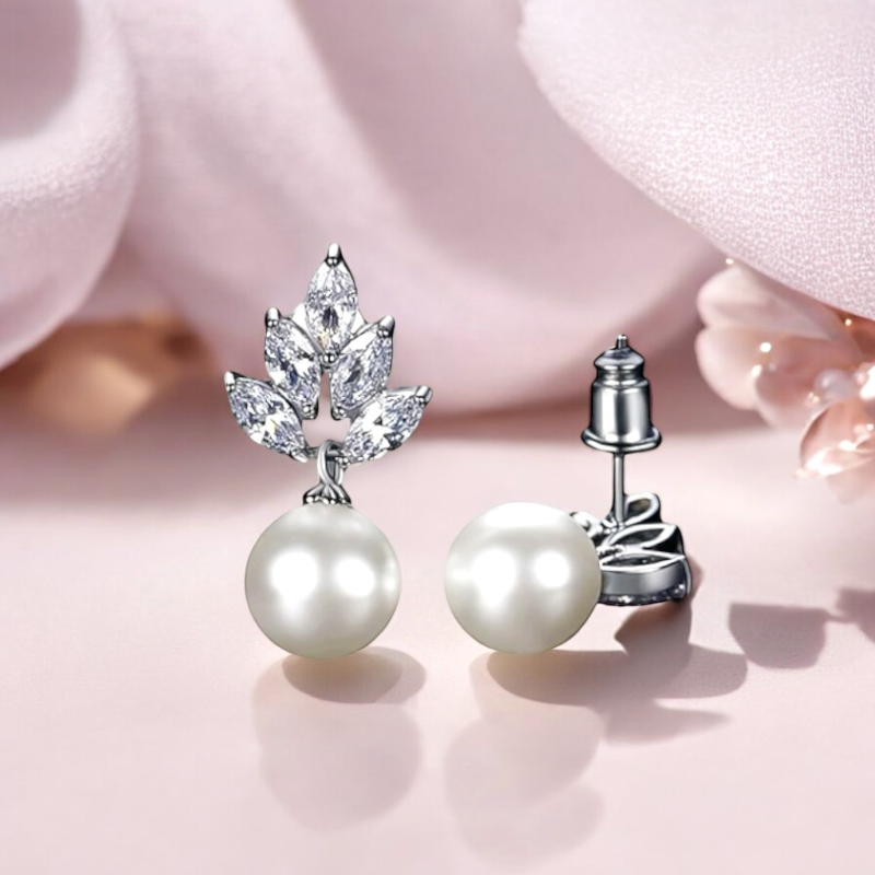 Smukke øreringe med hvide perler og klare sten. Øreringene er udført i et elegant, feminint design og passer til ethvert look.