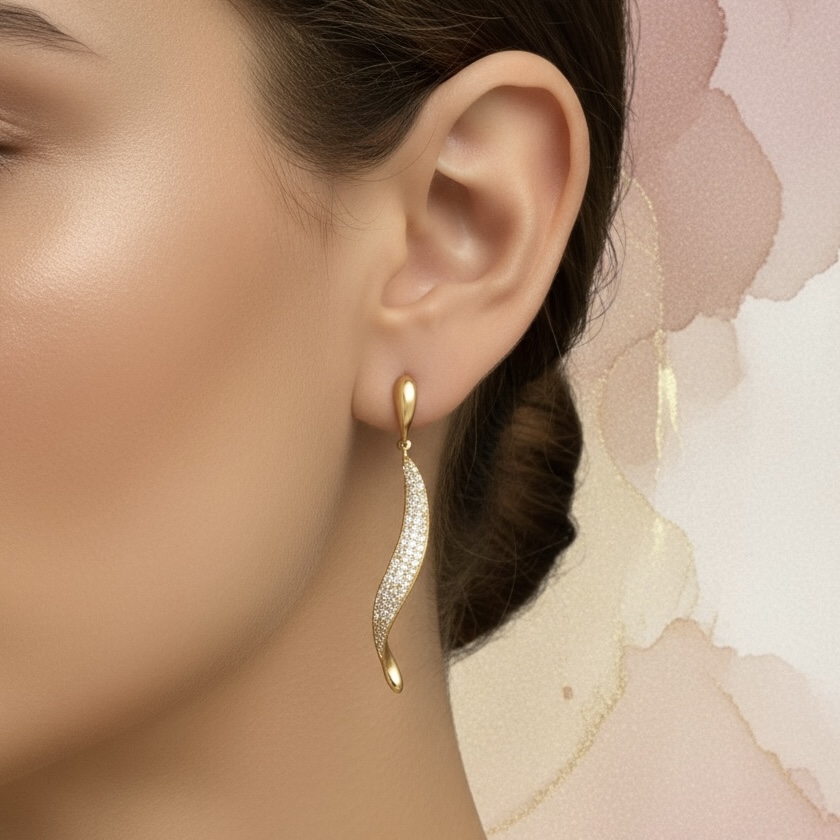 Smukke, eksklusive øreringe, som er fyldt med små, klare zirkoner. Øreringene kan pifte ethvert outfit op.