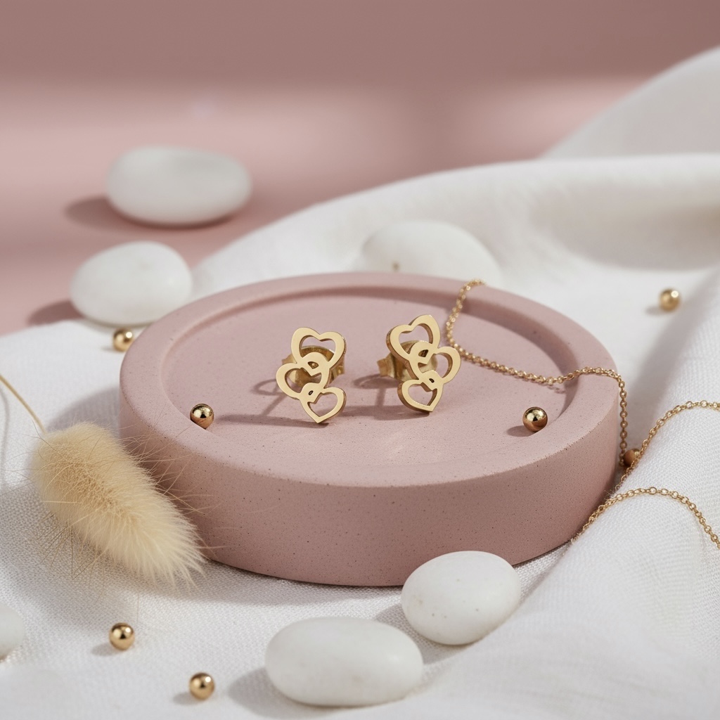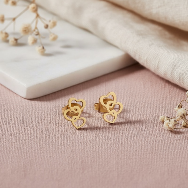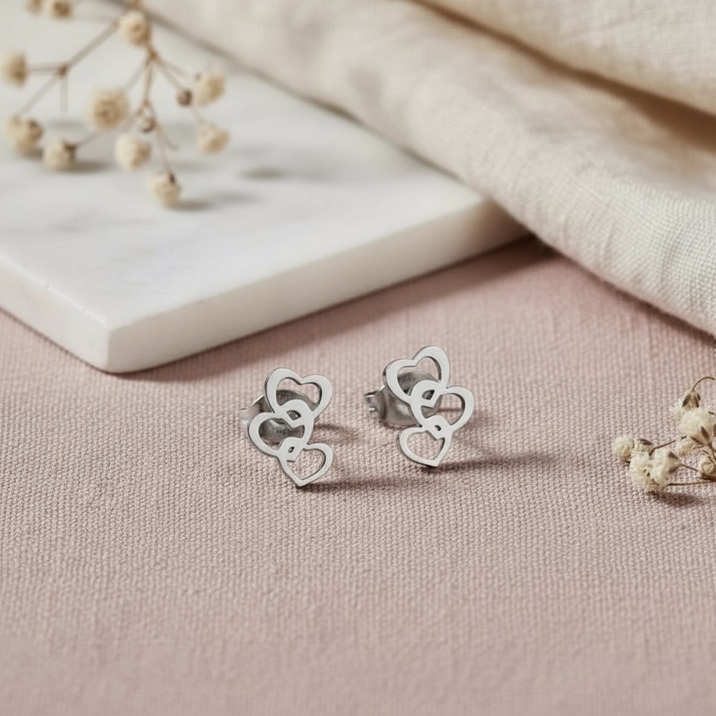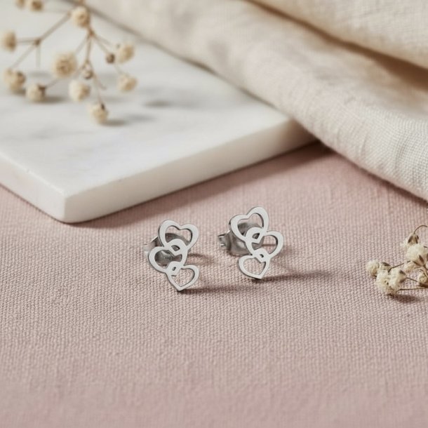 Små, fine hjerte-øreringe af rustfrit ædelstål. Øreringene er udført i et tidløst, feminint design og kan matches med ethvert outfit.