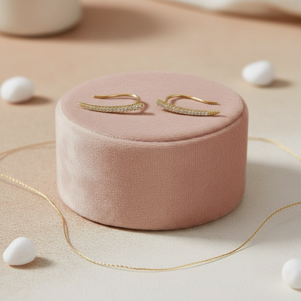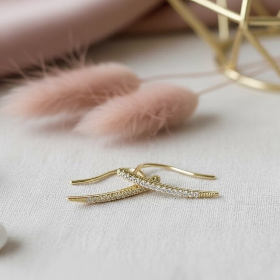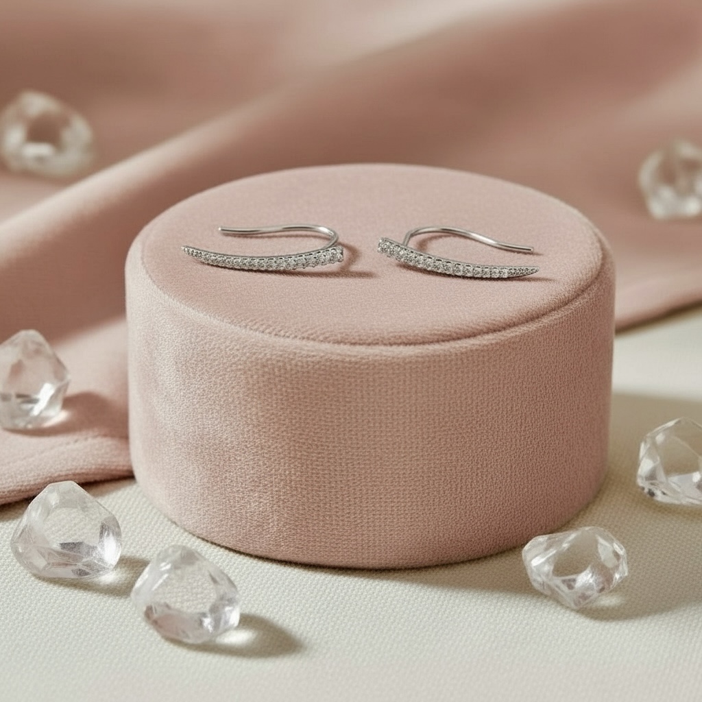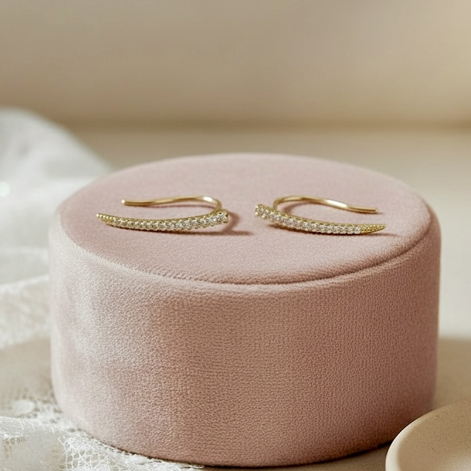 De smukkeste øreringe, som lægger sig flot opad øret. Øreringene er fyldt med små, klare, skinnende zirkoner. Øreringene har feminint, eksklusivt udtryk og passer perfekt til både hverdag og fest.