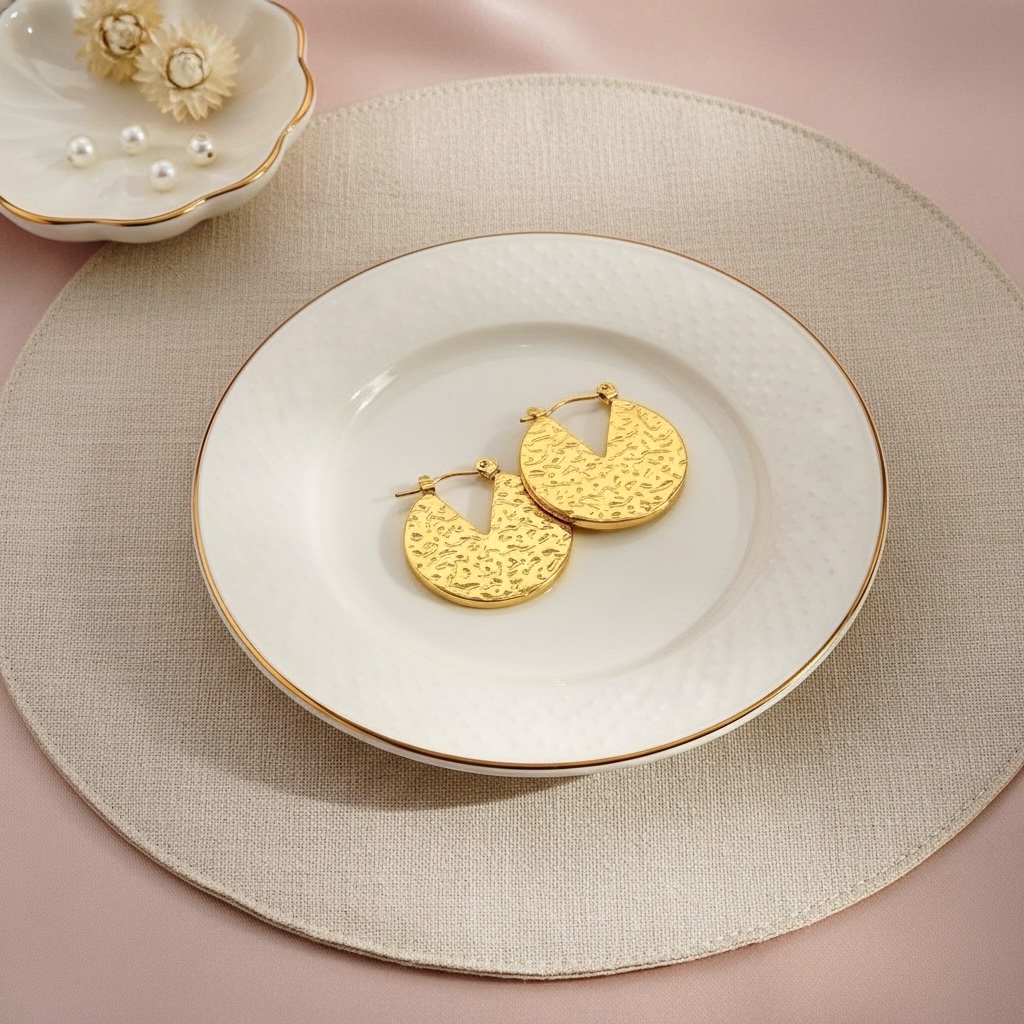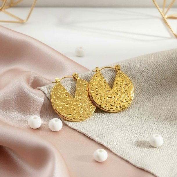 Pift dit outfit op med de flotte "Mina" hoops. Øreringene er af rustfrit ædelstål med en "hamret" overflade.