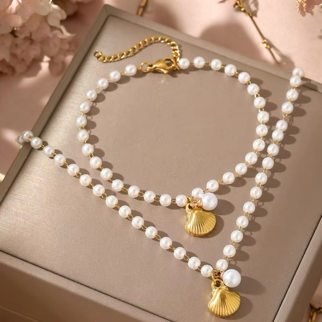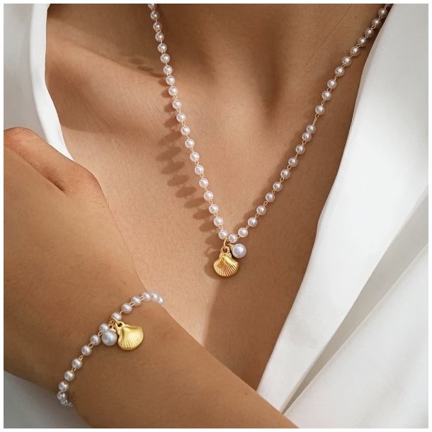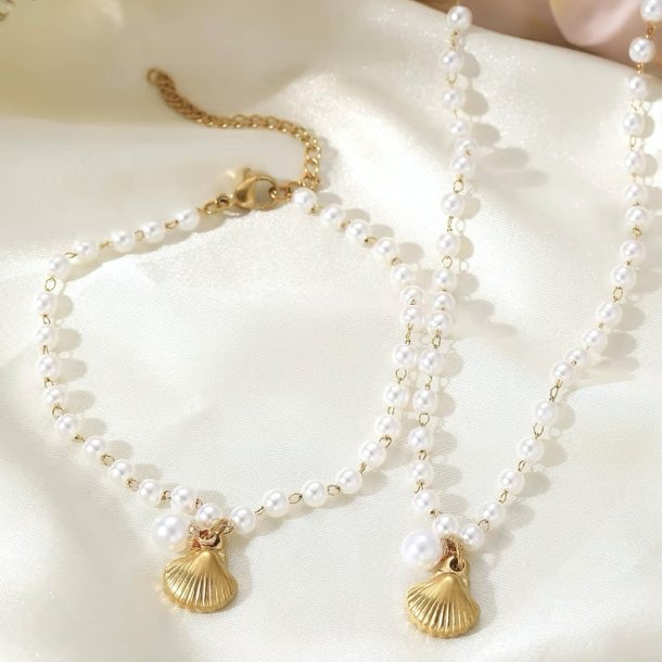 Flolt perle-smykkesæt bestående af halskæde og armbånd. Smykkerne er af rustfrit ædelstål og passer til ethvert look.