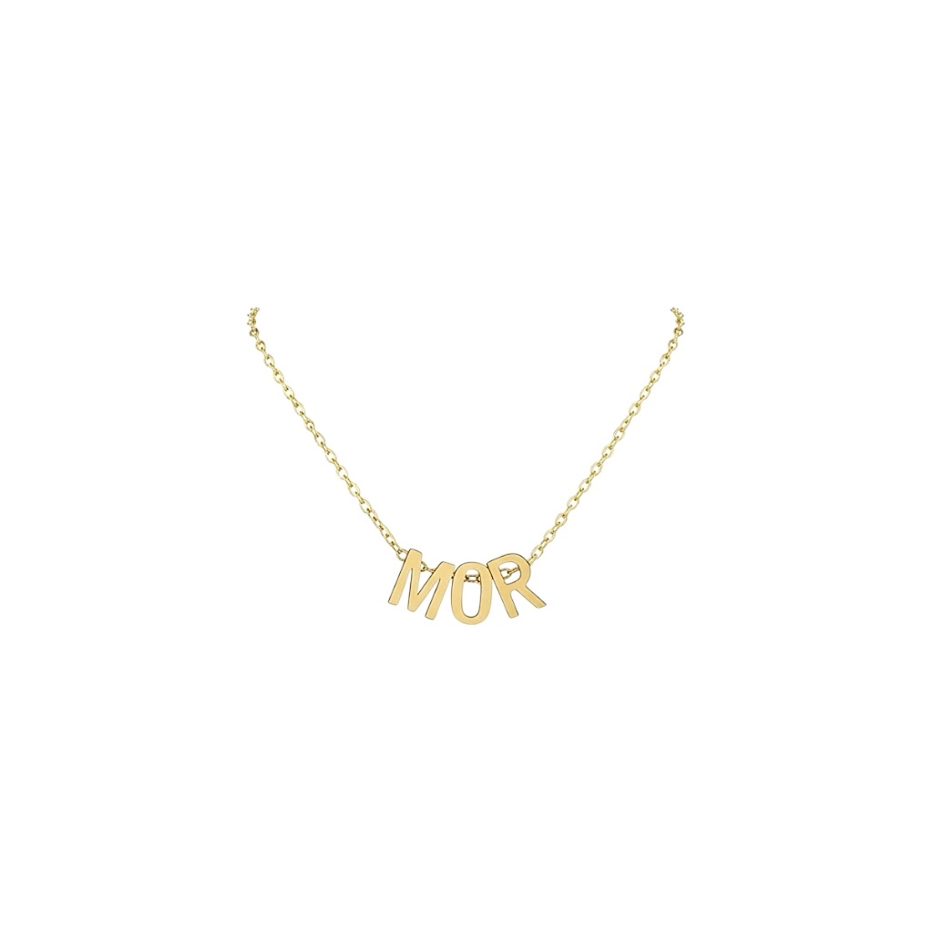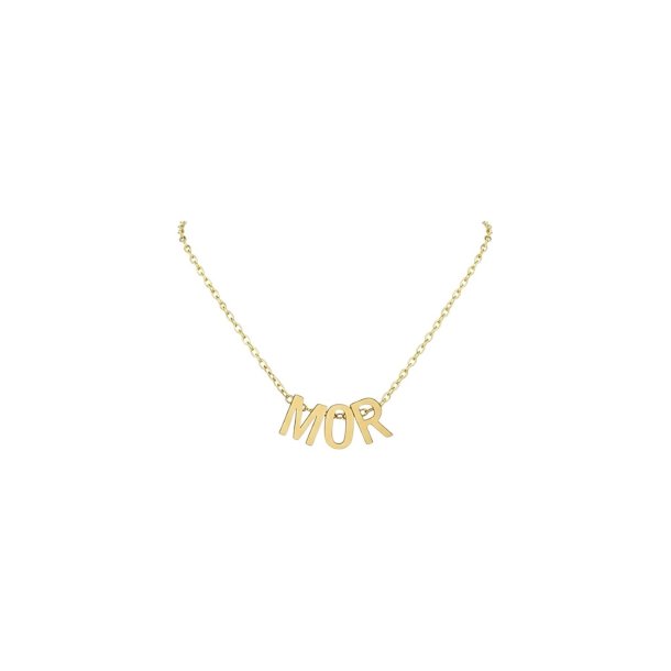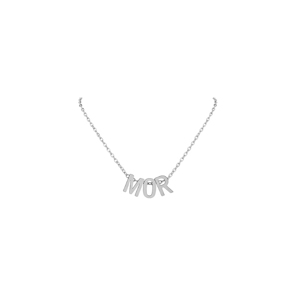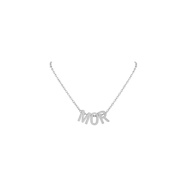 Super fin halskæde i rustfrit ædelstål med tre, små vedhæng, som danner ordet "MOR". Den perfekte gave til verdens bedste mor ♥