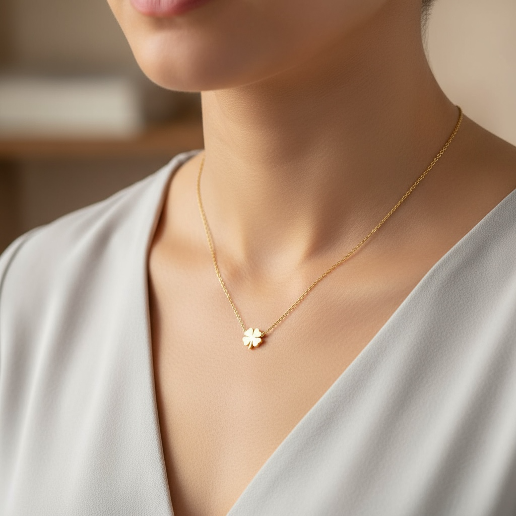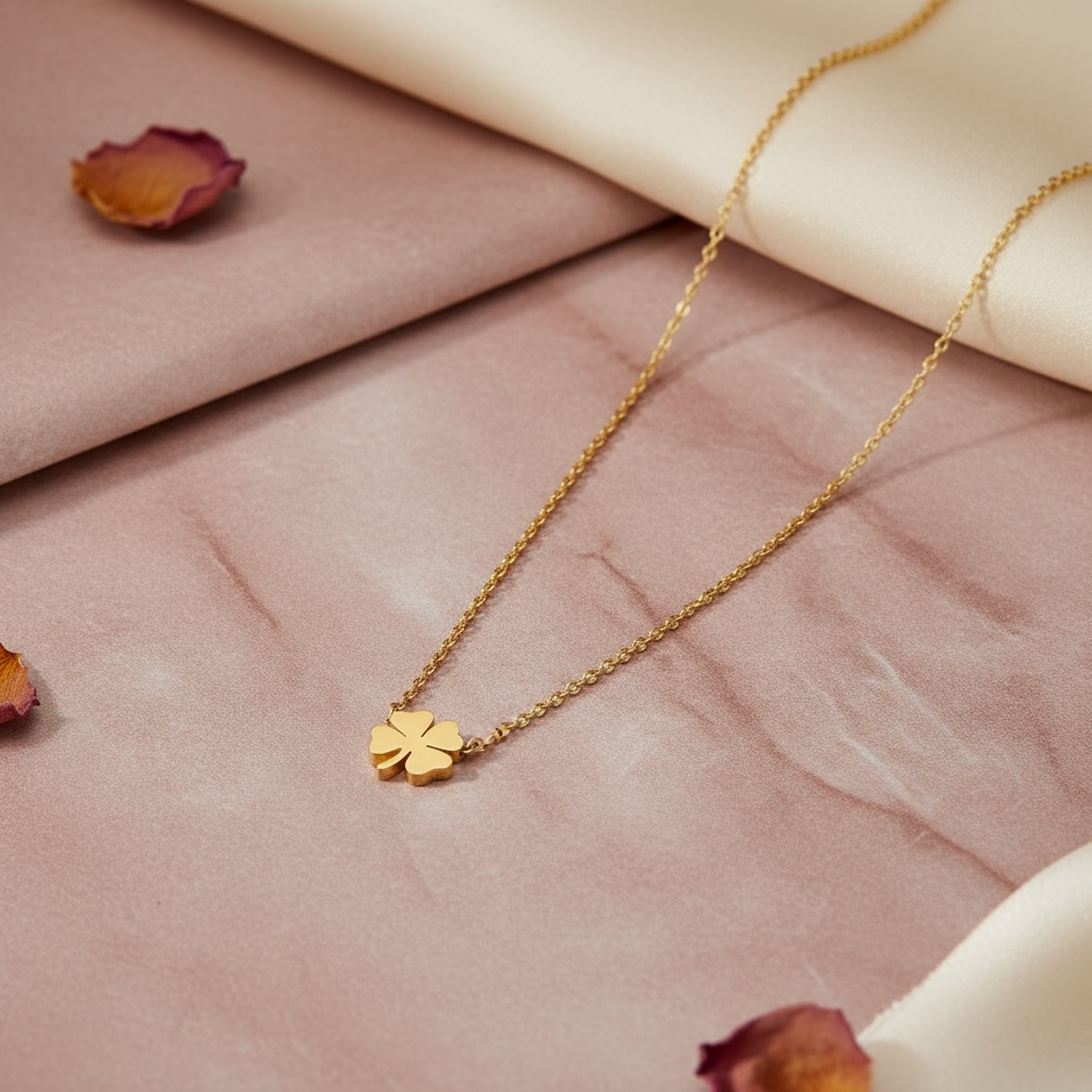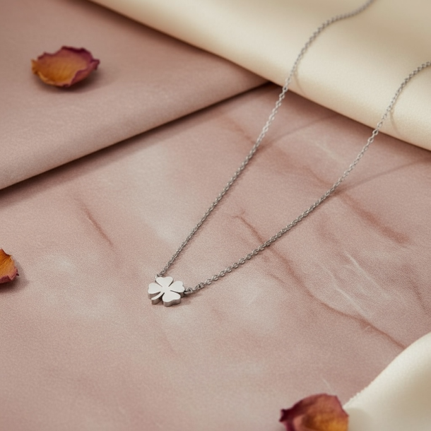 Flot, enkel halskæde med et lille, fint kløver-vedhæng. Halskæden er af rustfrit ædelstål og kan bruges alene eller sammen med dine andre yndlings-halskæder.