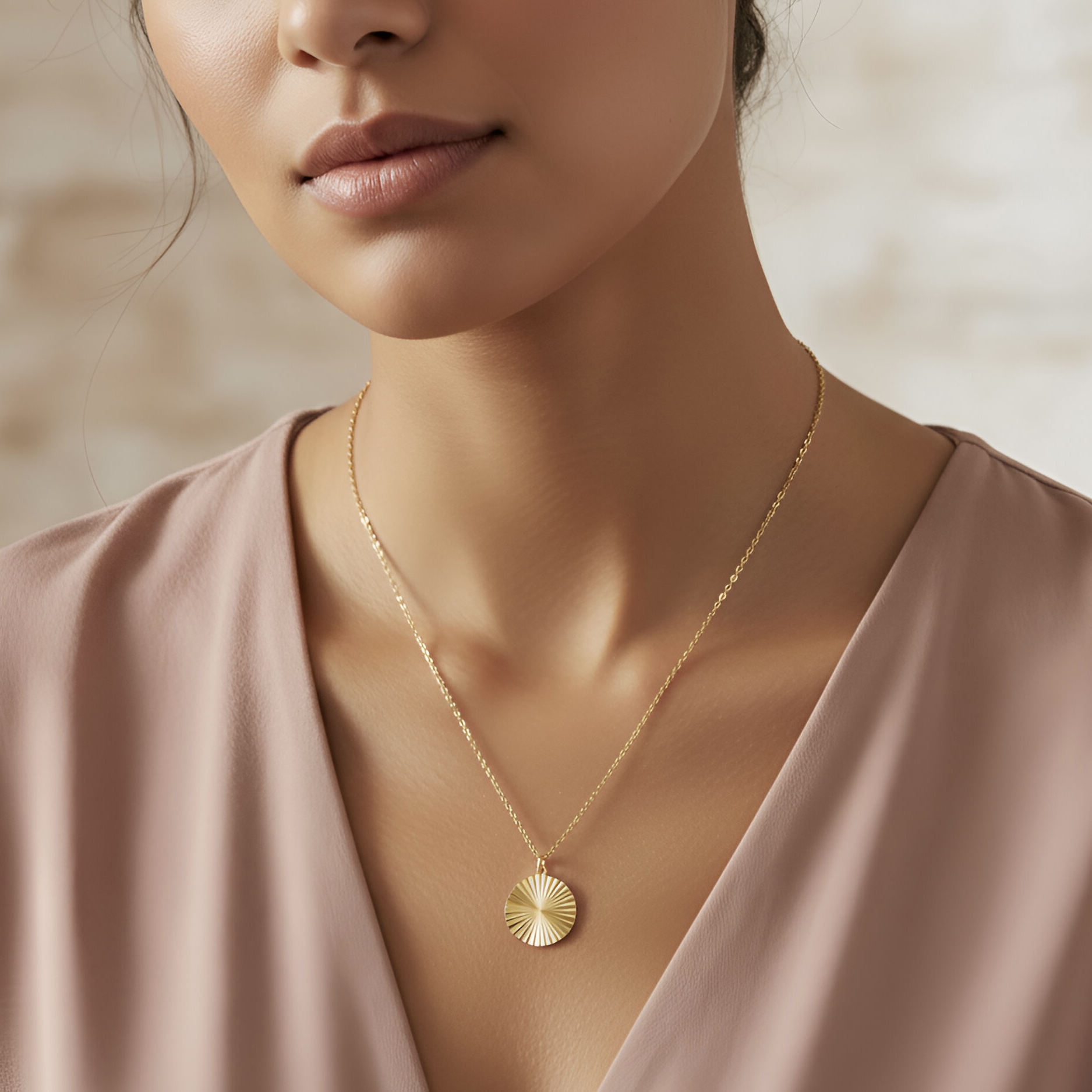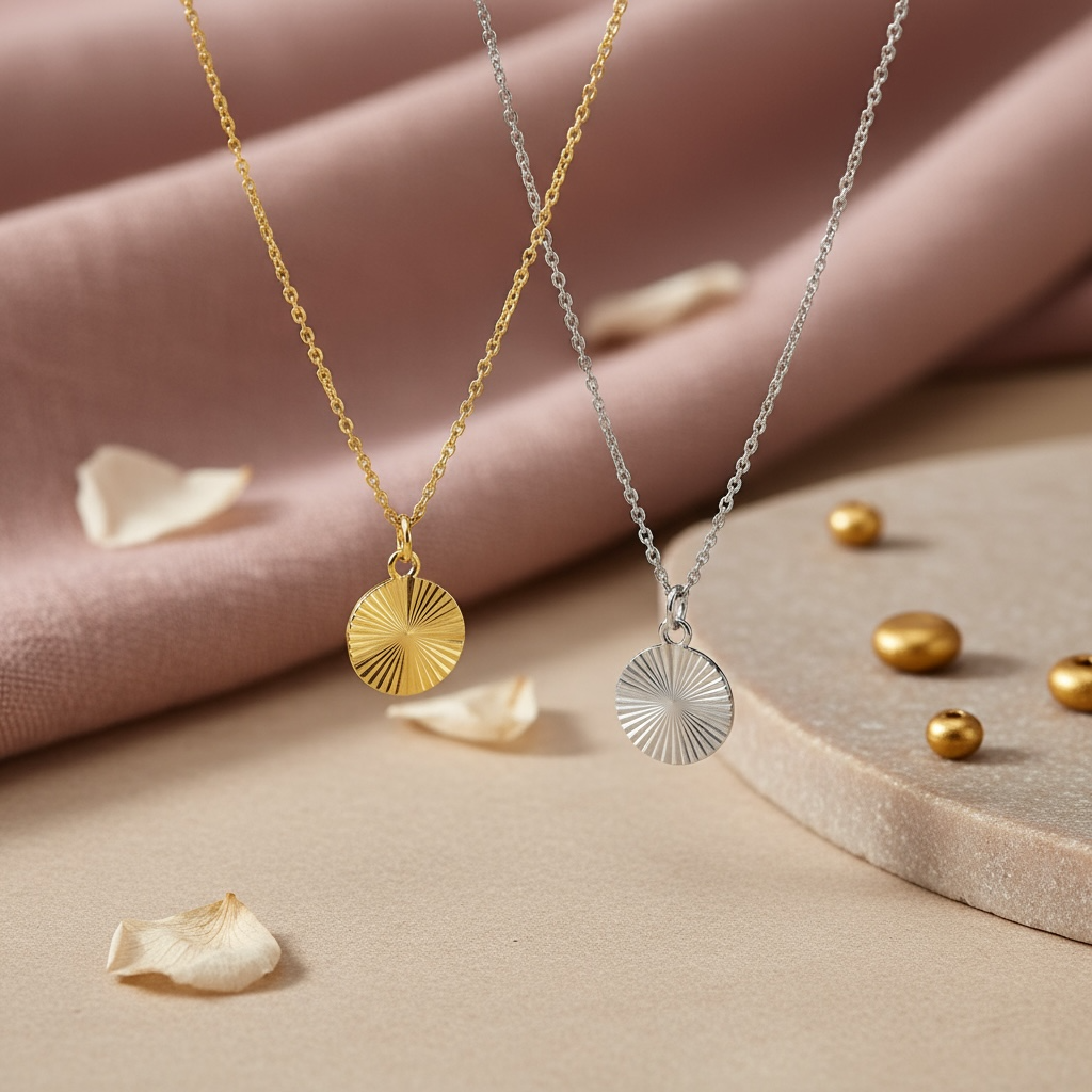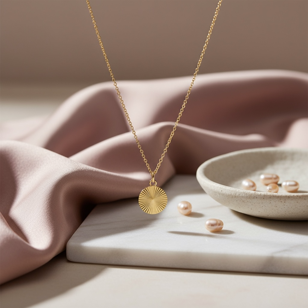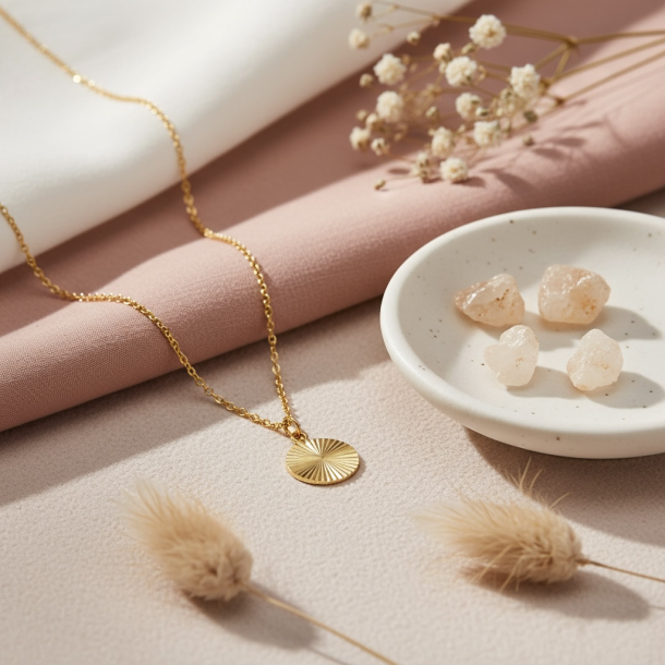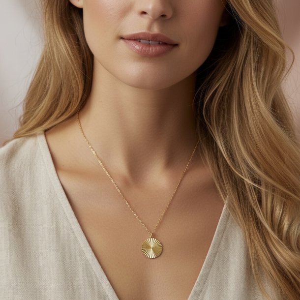 Super fin halskæde med prægninger, der reflekterer lyset smukt, hvilket giver smykket en "skinnende" effekt.