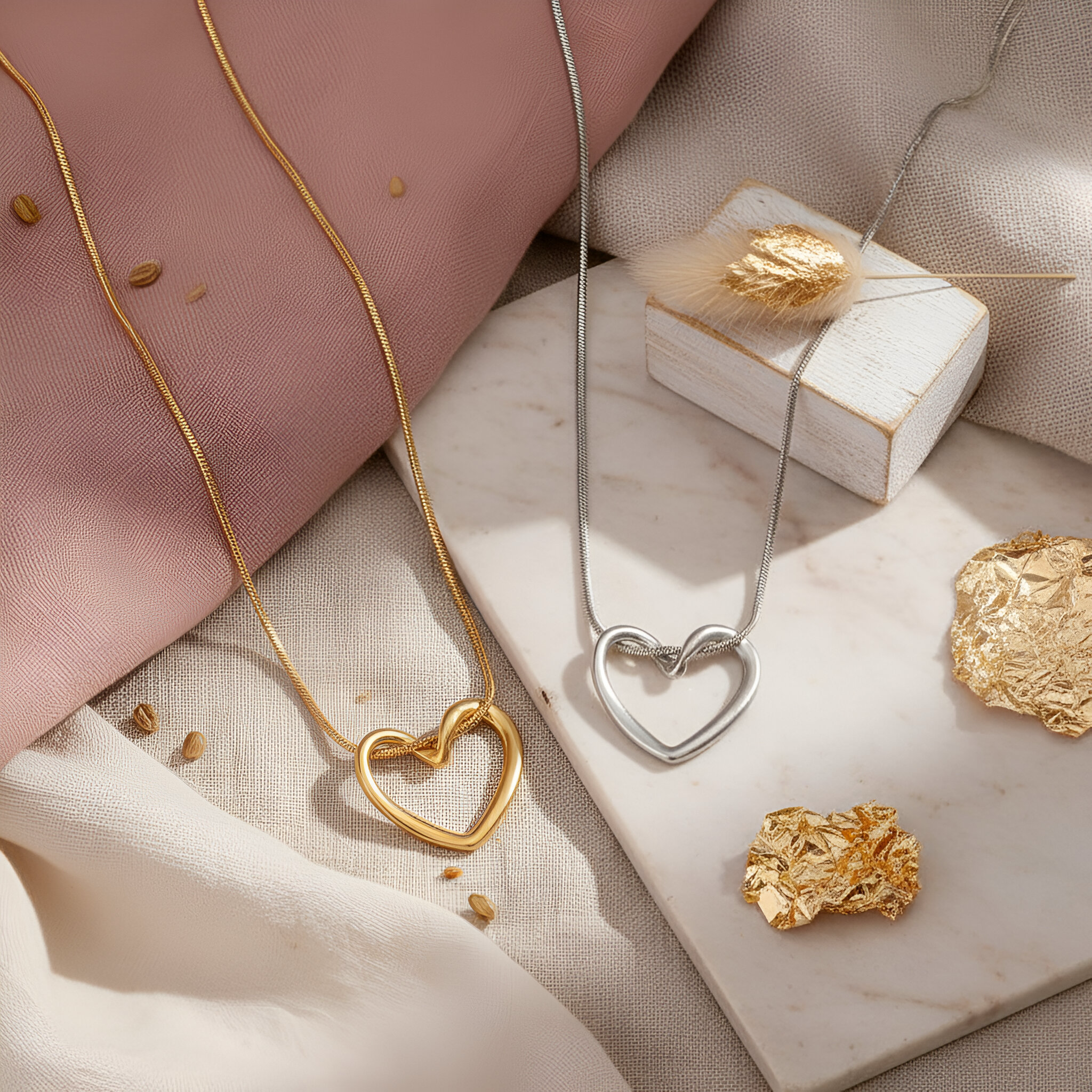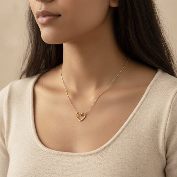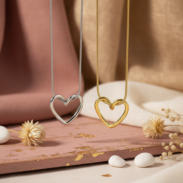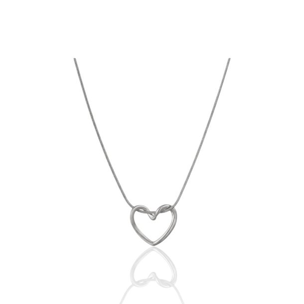 Enkel, fin hjerte-halskæde i rustfrit ædelstål. Halskæden er udført i et feminint design og kan bruges alene eller sammen med dine andre yndlings-halskæder.